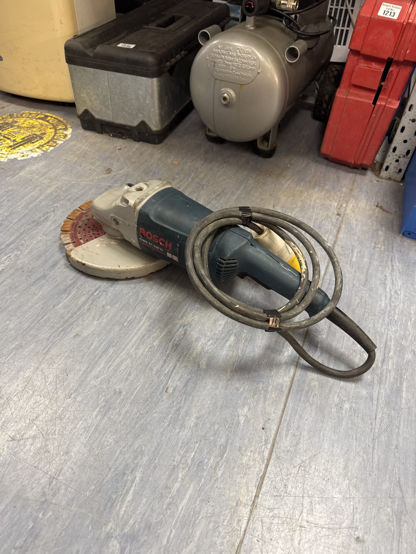 This Bosch GWS 21-230 H disc cutter is offered in untested condition. The trigger mechanism feels like it may require attention. Despite this, it presents an opportunity for restoration or use for parts, potentially appealing to tool collectors or those seeking a project.