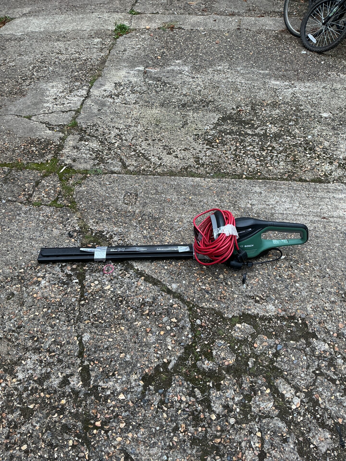 This is a Bosch electric hedge cutter, designed for maintaining gardens and hedges with ease. Featuring a 700mm blade length, this tool is ideal for medium to large hedges. It’s a powerful and efficient solution for keeping your garden neat and tidy, offering a clean cut every time.