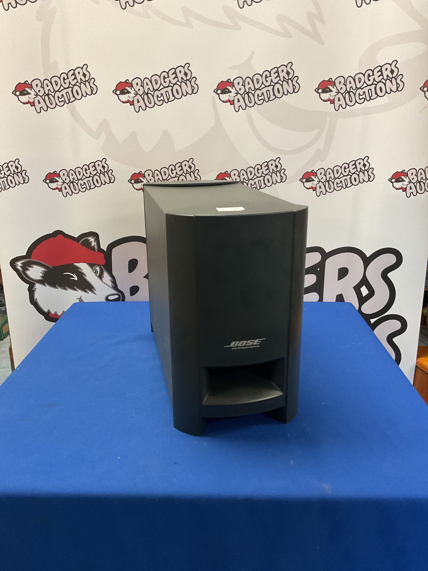 This Bose PS3-2-1 II speaker system is presented for consideration by a discerning buyer. The system’s condition should be assessed by the buyer, and it may be of interest to collectors of vintage audio equipment or those seeking to enhance their home theater setup. Please review all provided images for a detailed visual assessment of the item’s condition.