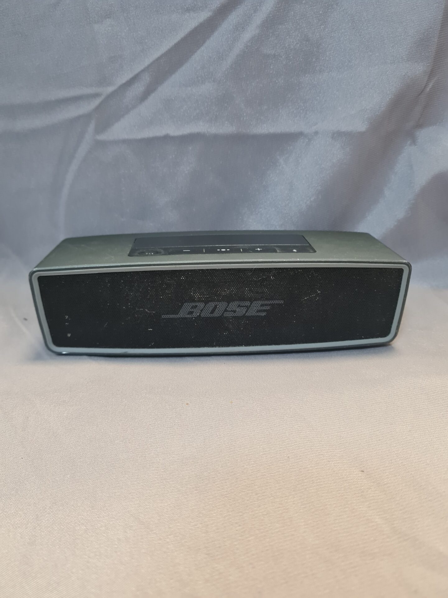 This Bose Soundlink Mini II exhibits signs consistent with use and age. Please examine the provided photographs carefully to assess its condition. It may be of interest to collectors of vintage audio equipment or those seeking a functional portable speaker.