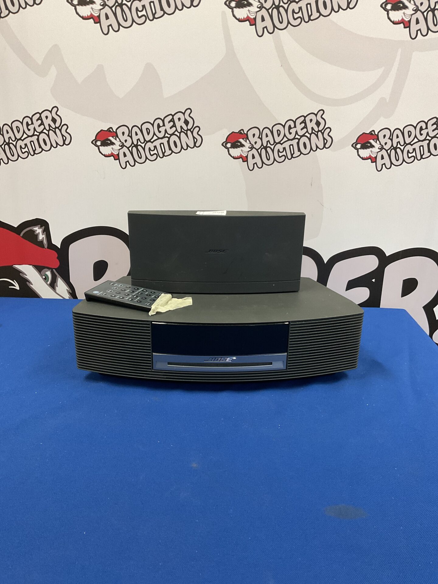 This is a Bose Wave music system, a compact and stylish tabletop stereo designed for high-quality audio reproduction. Featuring a built-in DAB module, this system allows for digital radio reception alongside traditional FM/AM broadcasts. The Wave system is known for its distinctive design and ability to deliver a wide soundstage from a relatively small footprint, making it a popular choice for those seeking a premium audio experience in a compact form factor.