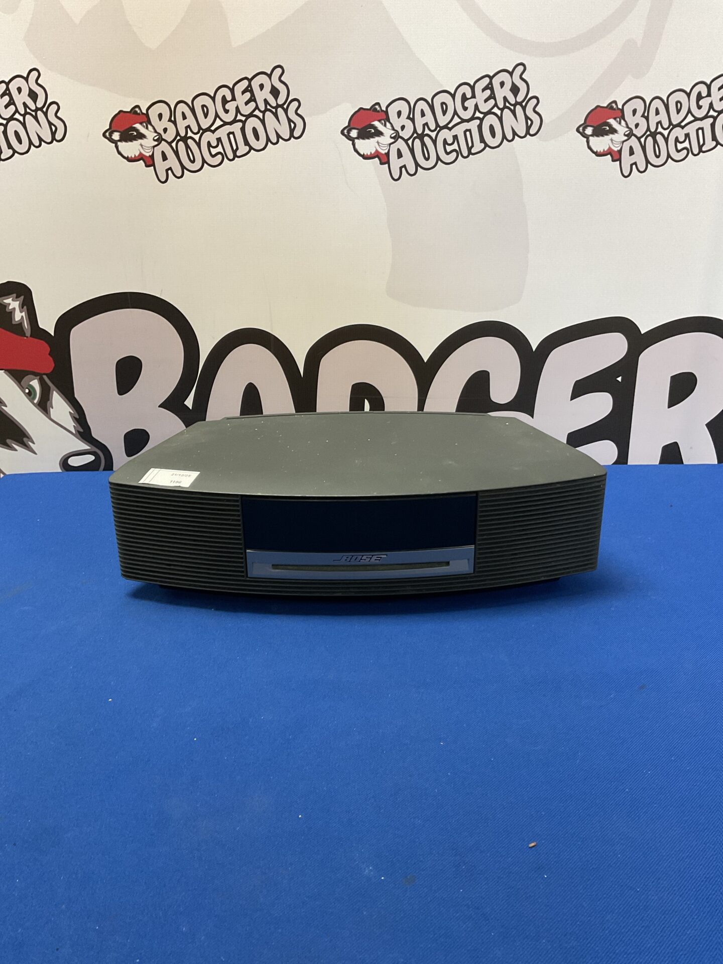 This is a Bose Wave music system, model AWRCC5. It’s a compact, tabletop stereo system designed to deliver high-quality audio in a sleek package. The system features a built-in CD player, AM/FM radio, and auxiliary input for connecting external devices. Its distinctive wave guide technology is designed to spread sound evenly throughout a room, creating a wide and immersive listening experience.