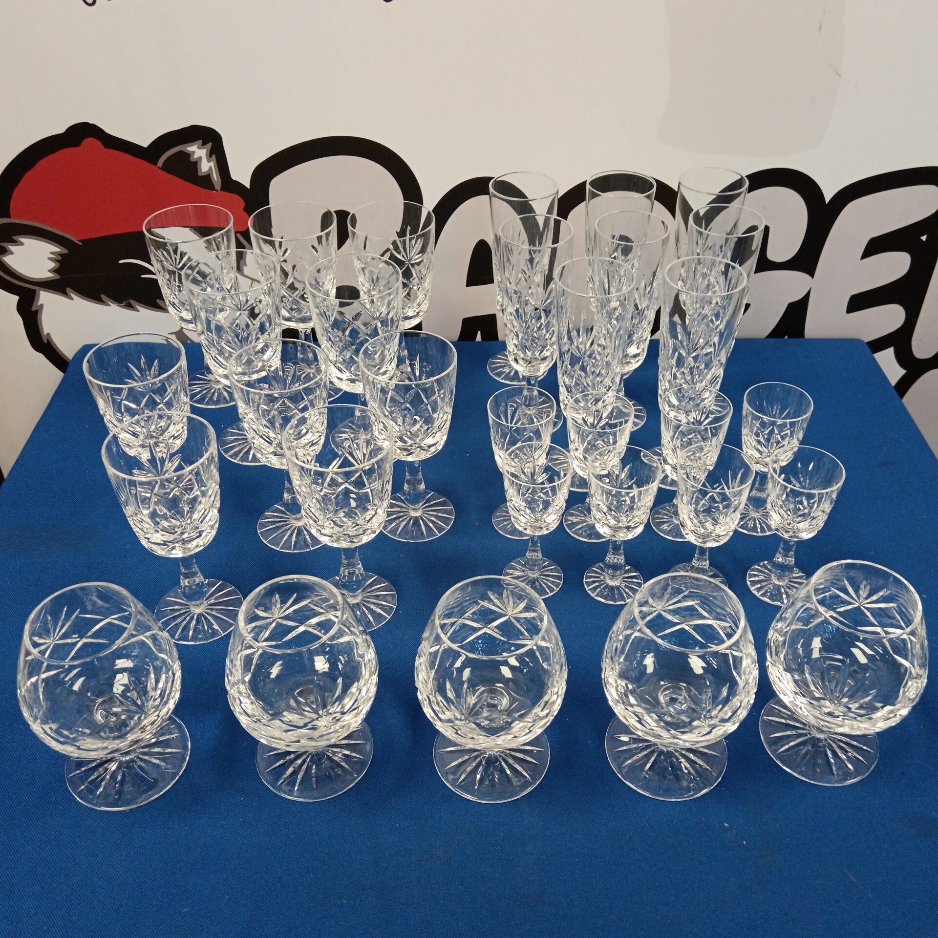 096 Box Of Edinburgh & Stewart Cut Glass & Crystal Wine & Sherry Glasses