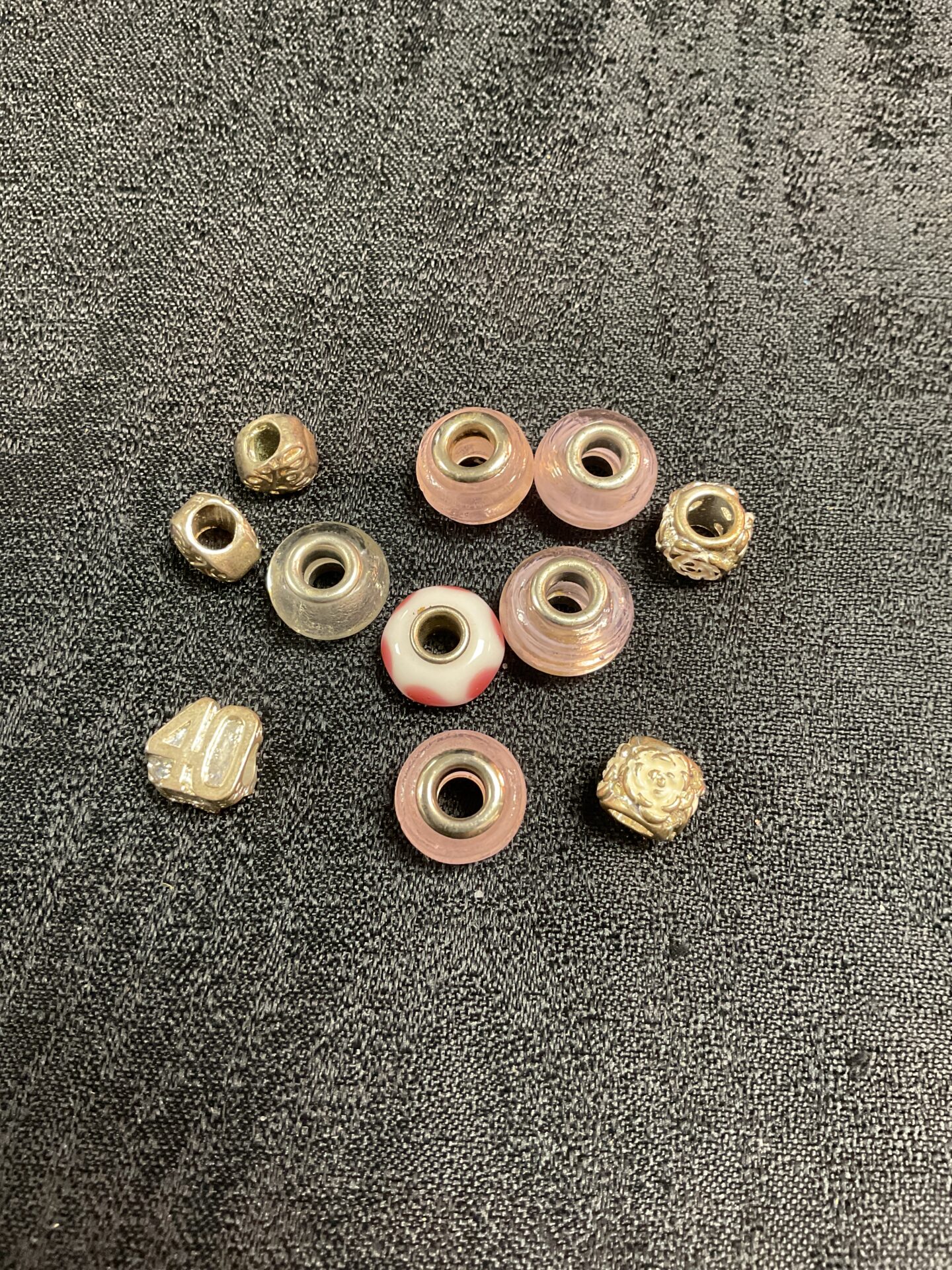 This collection features a variety of bracelet beads, combining both glass and metal materials. The beads exhibit diverse designs, including patterned glass and textured metal elements, suggesting they were intended for creating unique jewellery pieces. The mix of materials and styles indicates a potential origin from various periods or cultures, adding to their appeal for collectors and crafters alike.