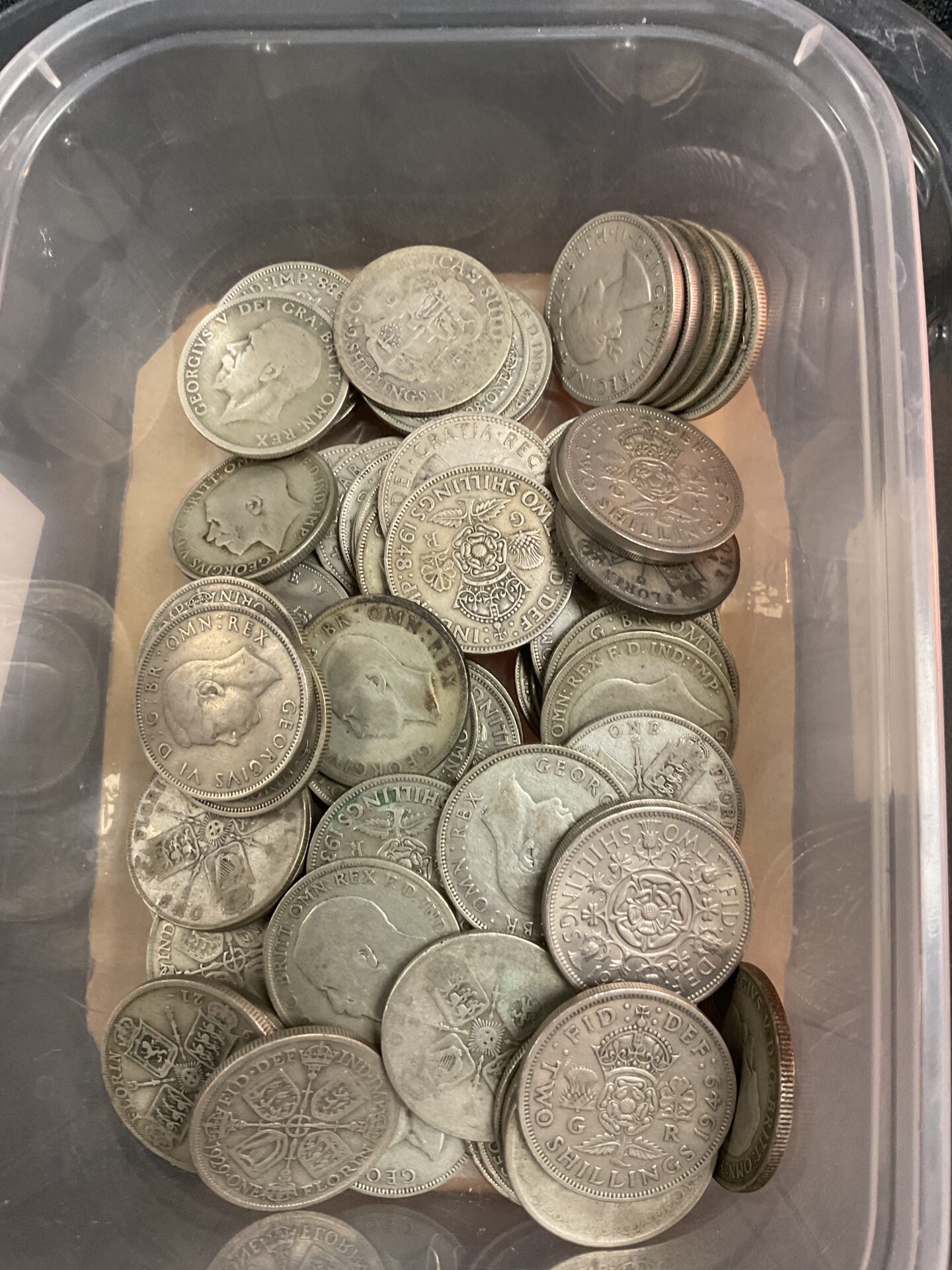 931 Tub Of Florins Coins Mostly Half Silver 830g Gross Approx 600g Half Silver