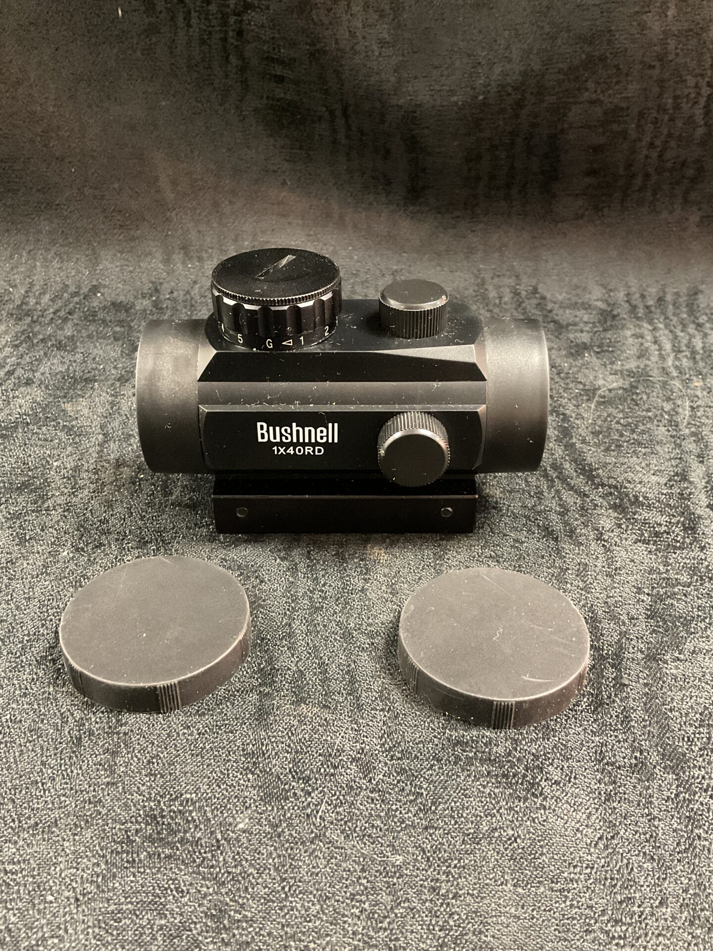 This Bushnell 1x40RD sight appears to be in good condition, showing minimal signs of wear. The lenses are clear, and the adjustments function smoothly. This optic would be a great addition to any rifle setup, offering improved accuracy and speed. It’s a practical and reliable choice for hunters, sport shooters, and tactical enthusiasts alike.