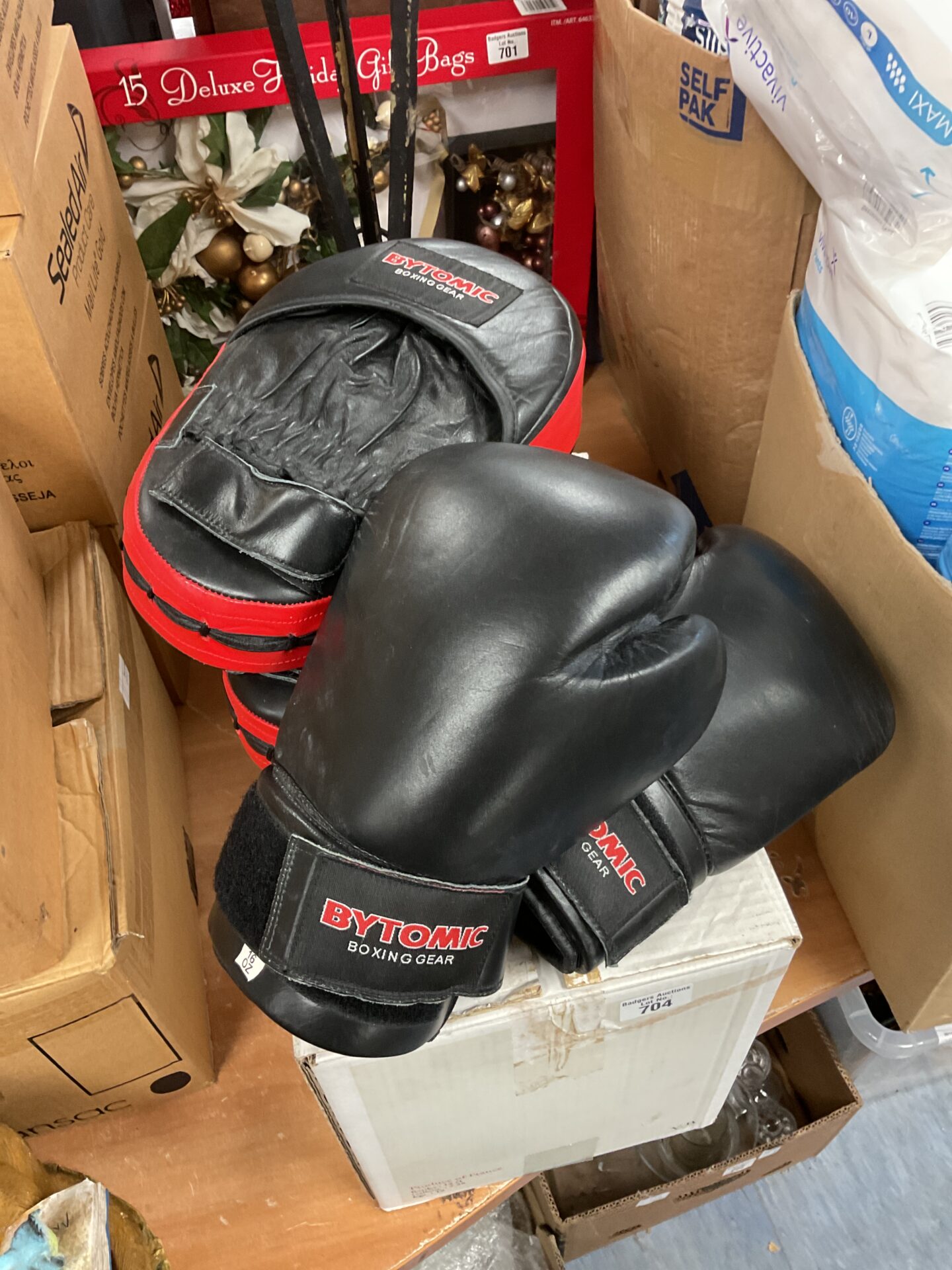These boxing gloves appear to be pre-owned and show signs of wear consistent with use. They may exhibit scuffs, marks, or slight discolouration. Despite this, they remain a potentially interesting item for boxing enthusiasts or collectors of sports memorabilia.