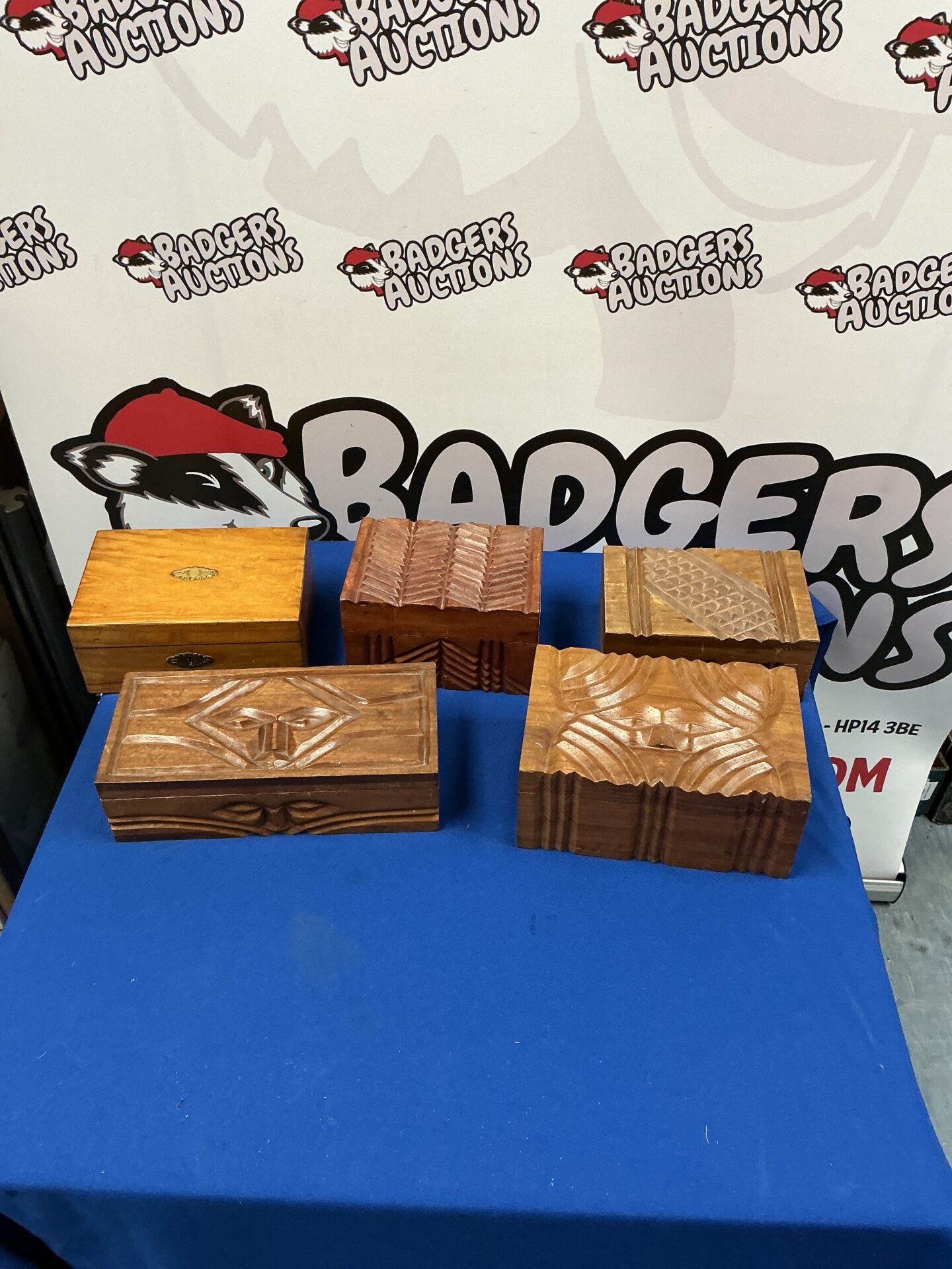 344 Five Carved Wooden Boxes
