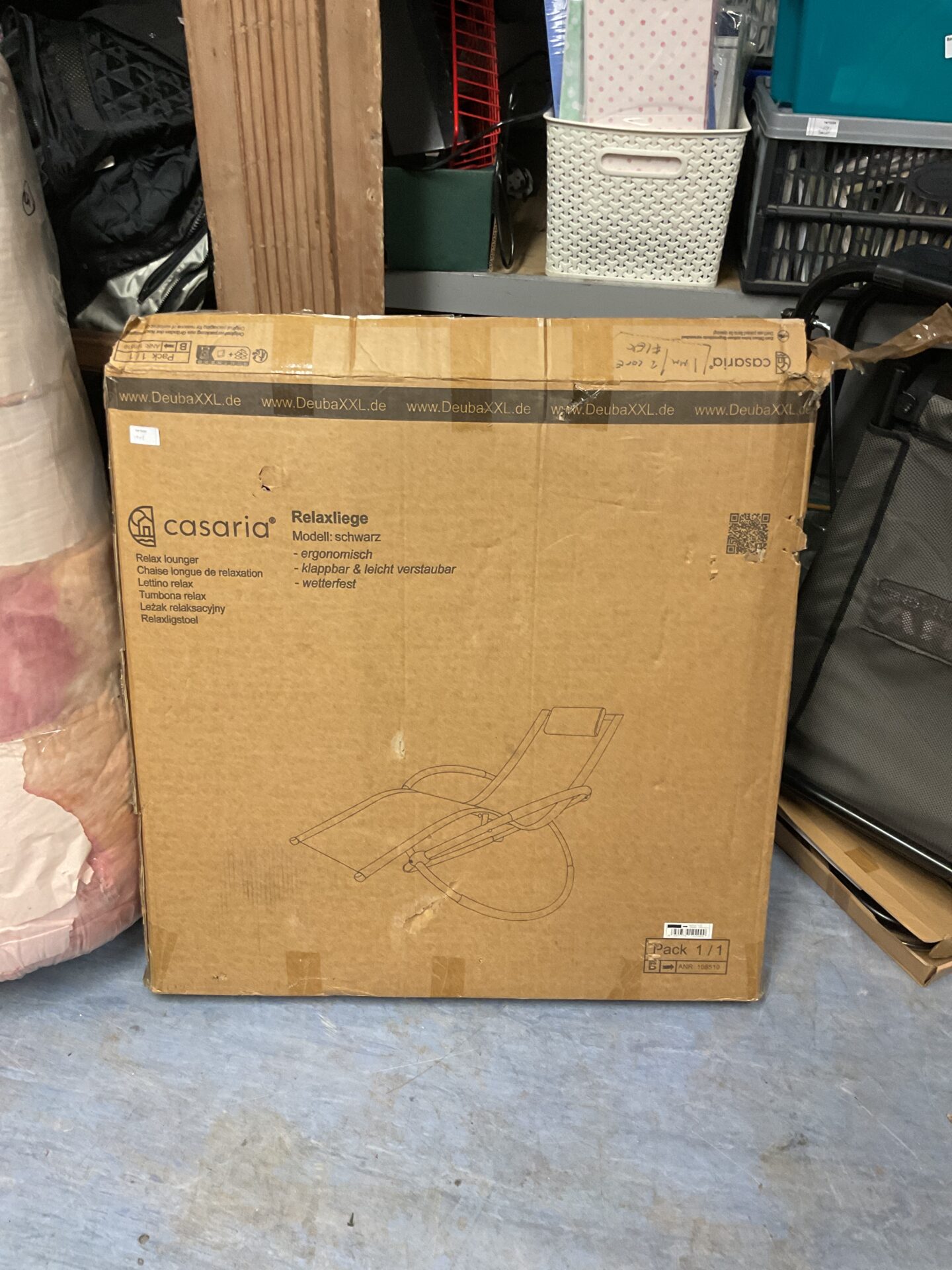This is a Casaria relax lounger, designed for comfortable outdoor relaxation. The lounger appears to be constructed with a metal frame and a durable fabric sling seat, offering a blend of support and comfort. Its design suggests it’s intended for use in gardens, on patios, or other outdoor spaces, providing a place to unwind and enjoy the weather.