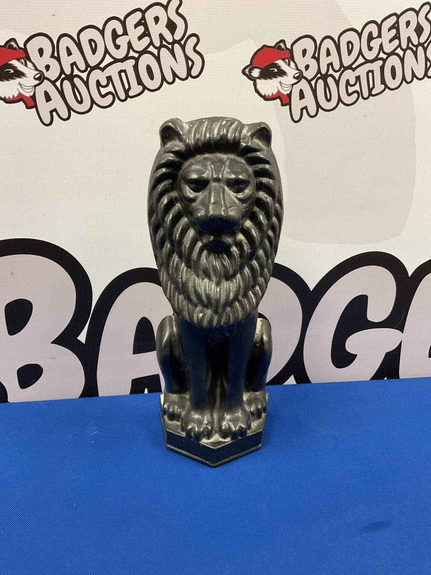 This impressive doorstop is crafted from heavy cast iron, depicting a majestic lion in a seated pose. The lion features detailed mane and facial features, showcasing the craftsmanship of its creation. This piece is designed to be both functional and decorative, adding a touch of character to any entryway or room.