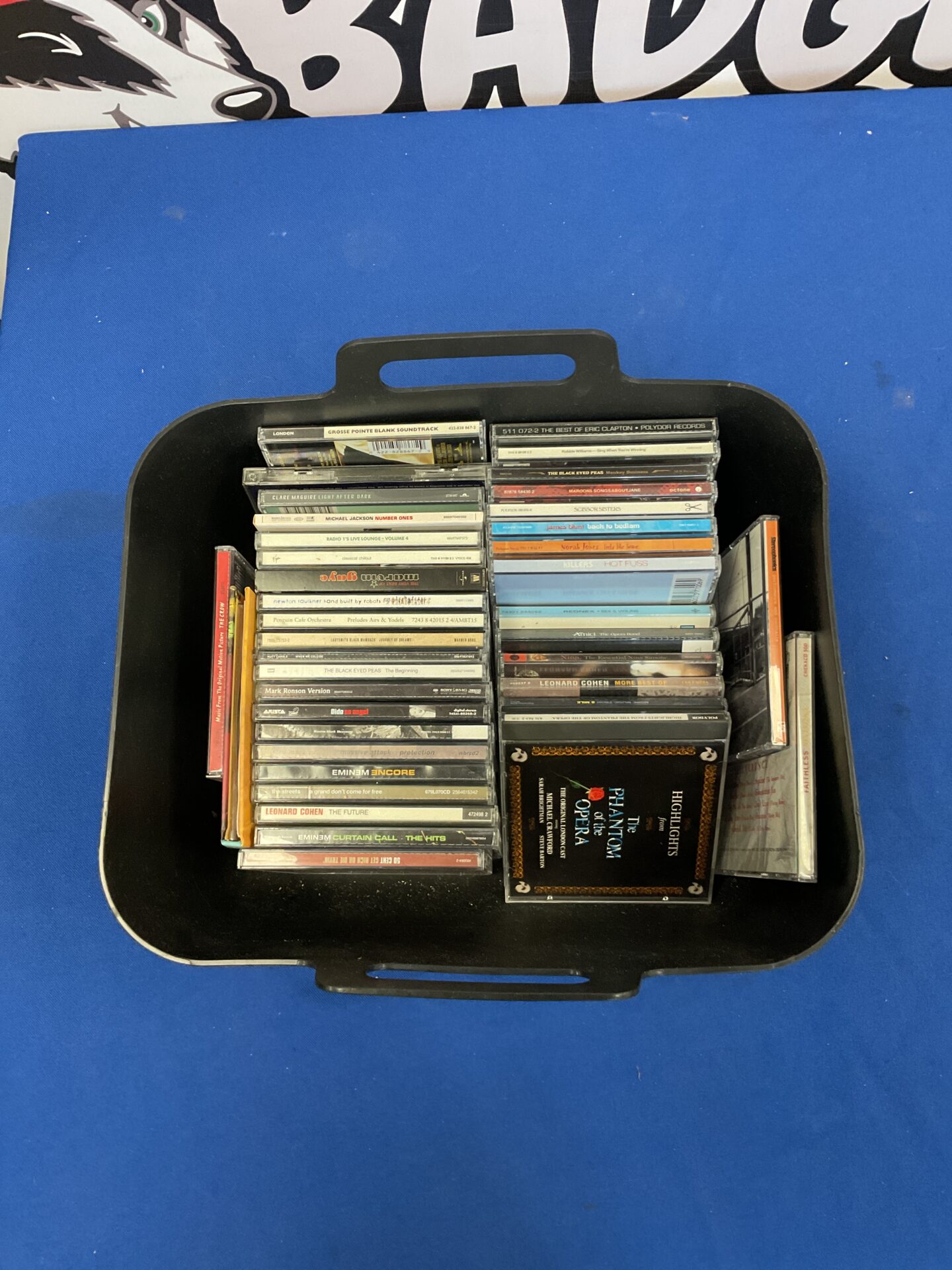 The condition of these CDs appears varied, with some showing signs of previous use. This lot may appeal to music enthusiasts, collectors of physical media, or those looking to expand their CD library. The presence of well-known artists adds to the potential interest for collectors and fans alike.