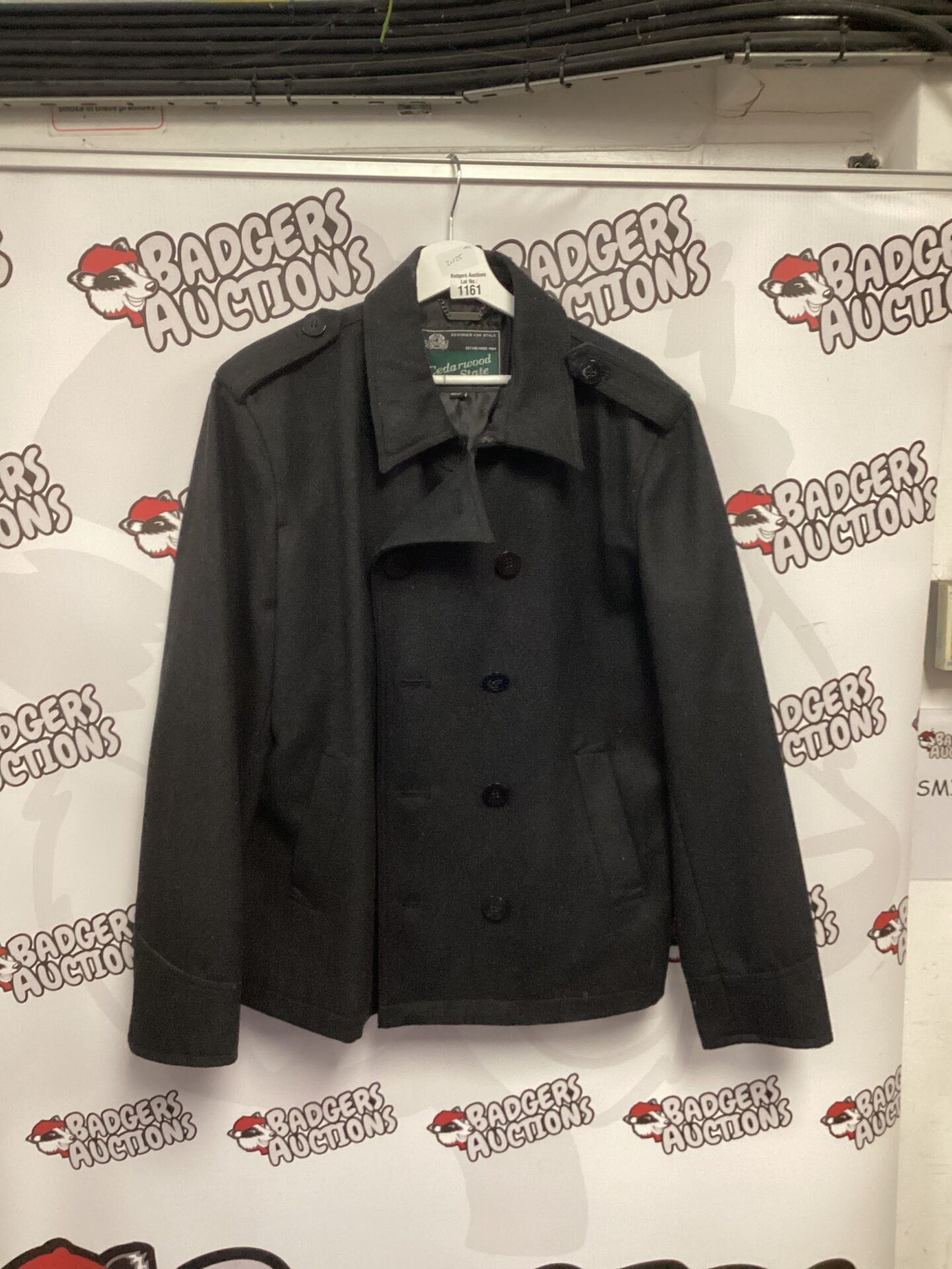 This is a classic Cedarwood State jacket, model 1161, designed for warmth and style. Crafted from a wool blend, this XL jacket features a traditional coat silhouette with a button-up front and a tailored fit. The jacket is designed for practical use in colder weather, offering both comfort and a refined aesthetic.