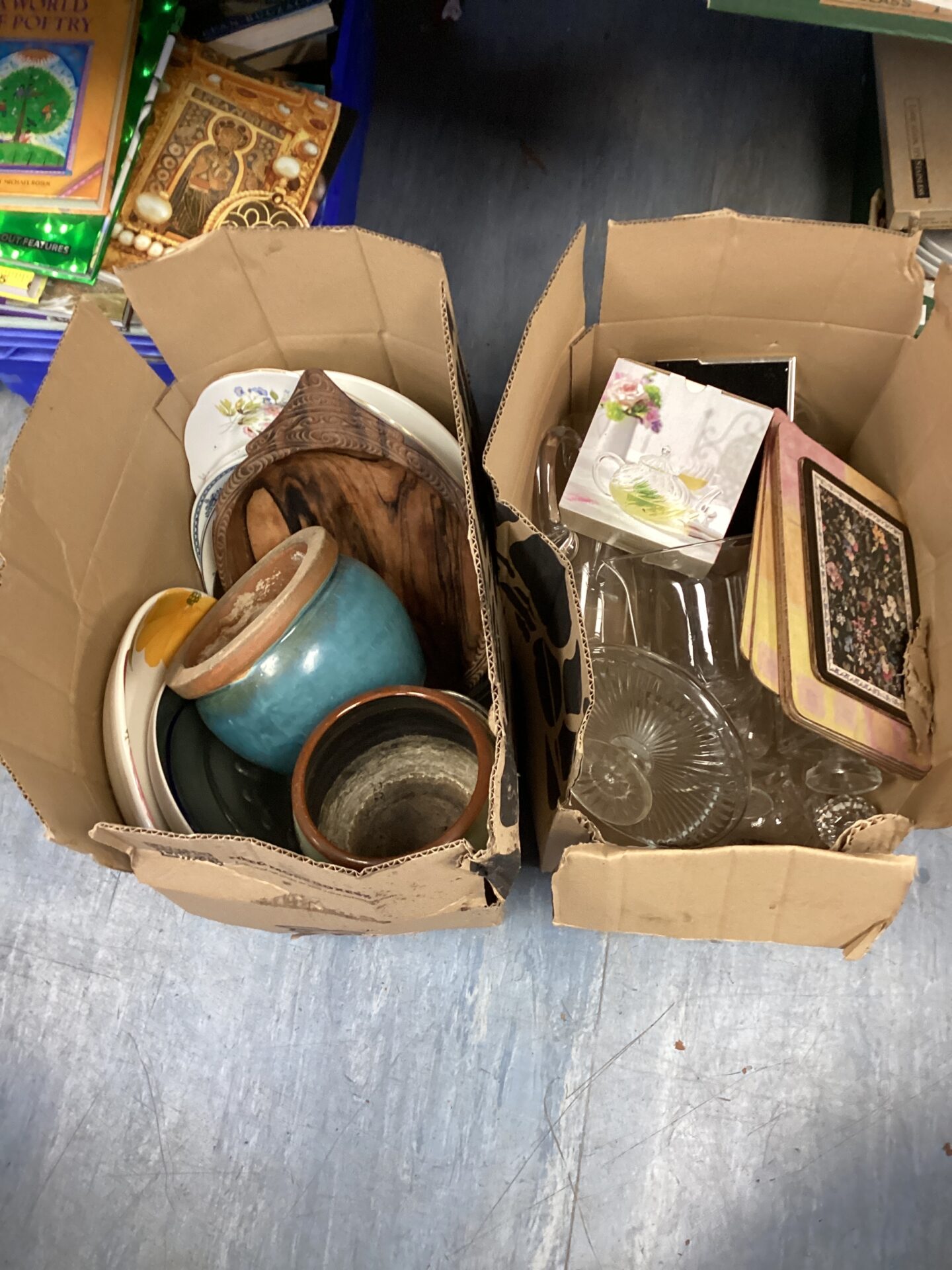 663 Two Boxes Of Mixed Inc Ceramic Planters, Place Mats & Plates