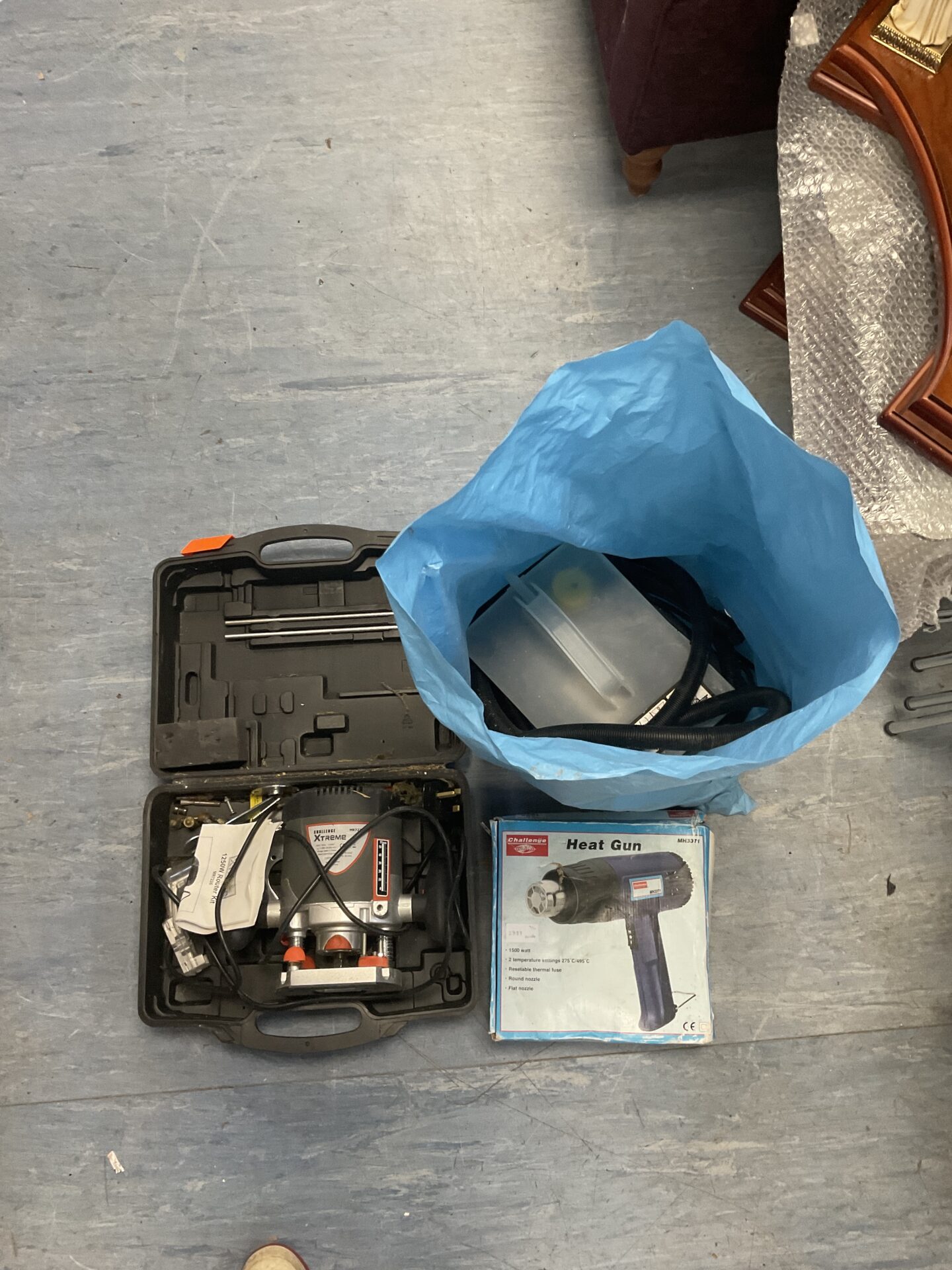 This lot includes a Challenge Xtreme tool kit, comprising a heat gun, a router, and a wallpaper steamer. The kit is presented in a black carrying case, designed for portability and storage of the tools. The heat gun and router appear to be part of the Xtreme range, suggesting a focus on power and performance for DIY and home improvement tasks.