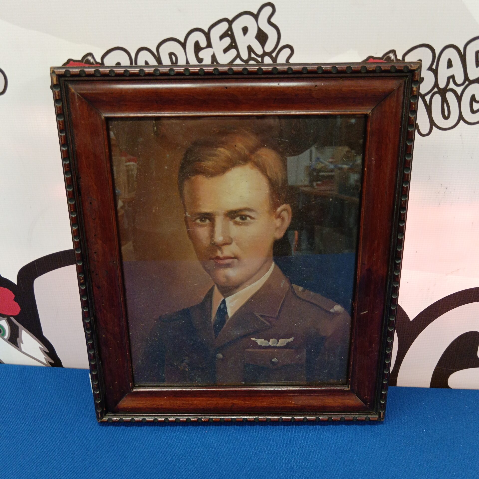 The painting exhibits signs of age and wear consistent with its vintage. While the painting is in good condition for its age, it may benefit from cleaning or restoration. This portrait would be a valuable addition to a collection of aviation memorabilia, historical portraits, or fine art, appealing to collectors and enthusiasts alike.