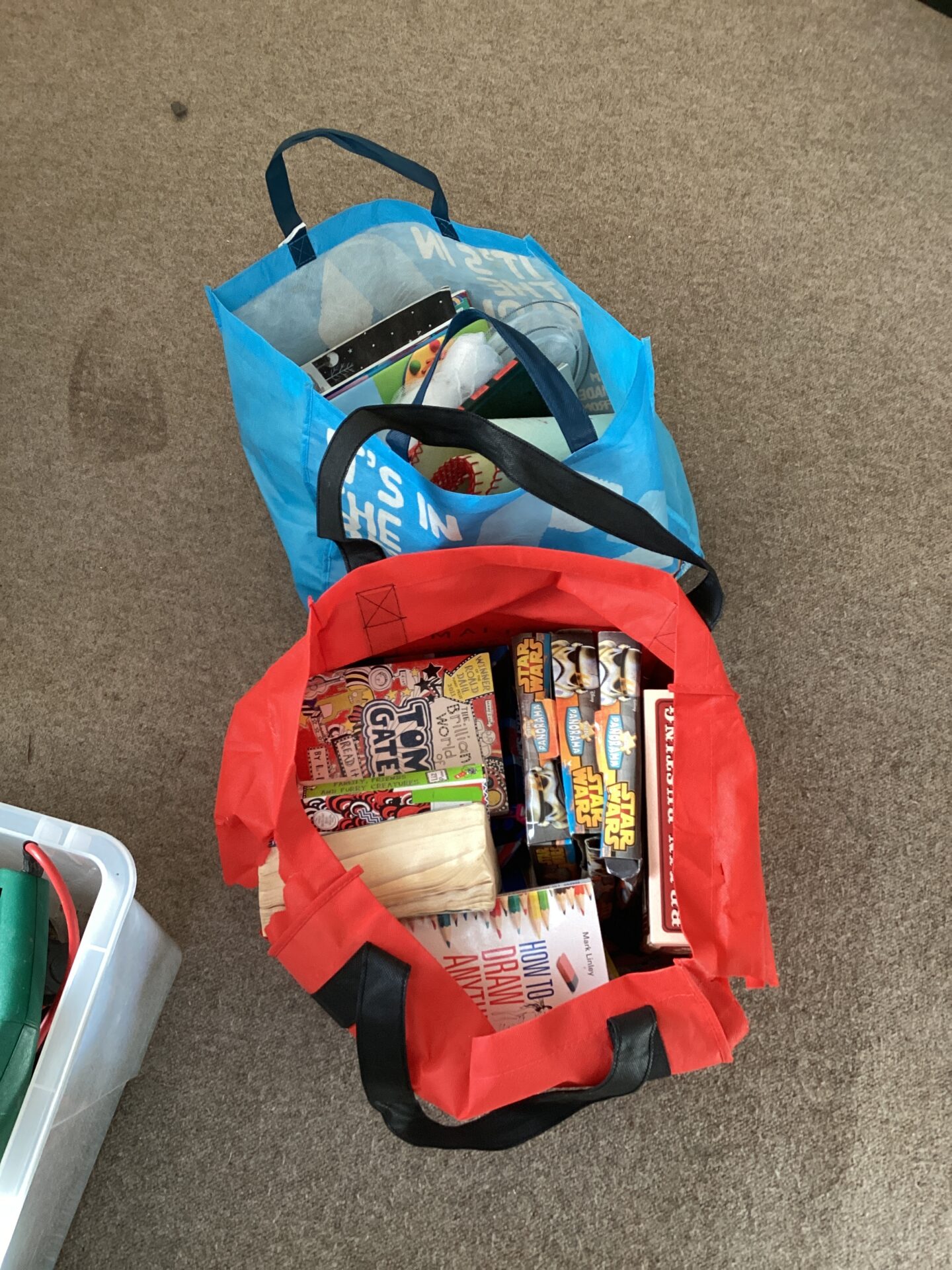 This lot comprises two bags filled with a variety of children’s books. The collection appears to include a range of titles and genres, suitable for young readers. The books are primarily paperback, offering a lightweight and portable reading experience for children.