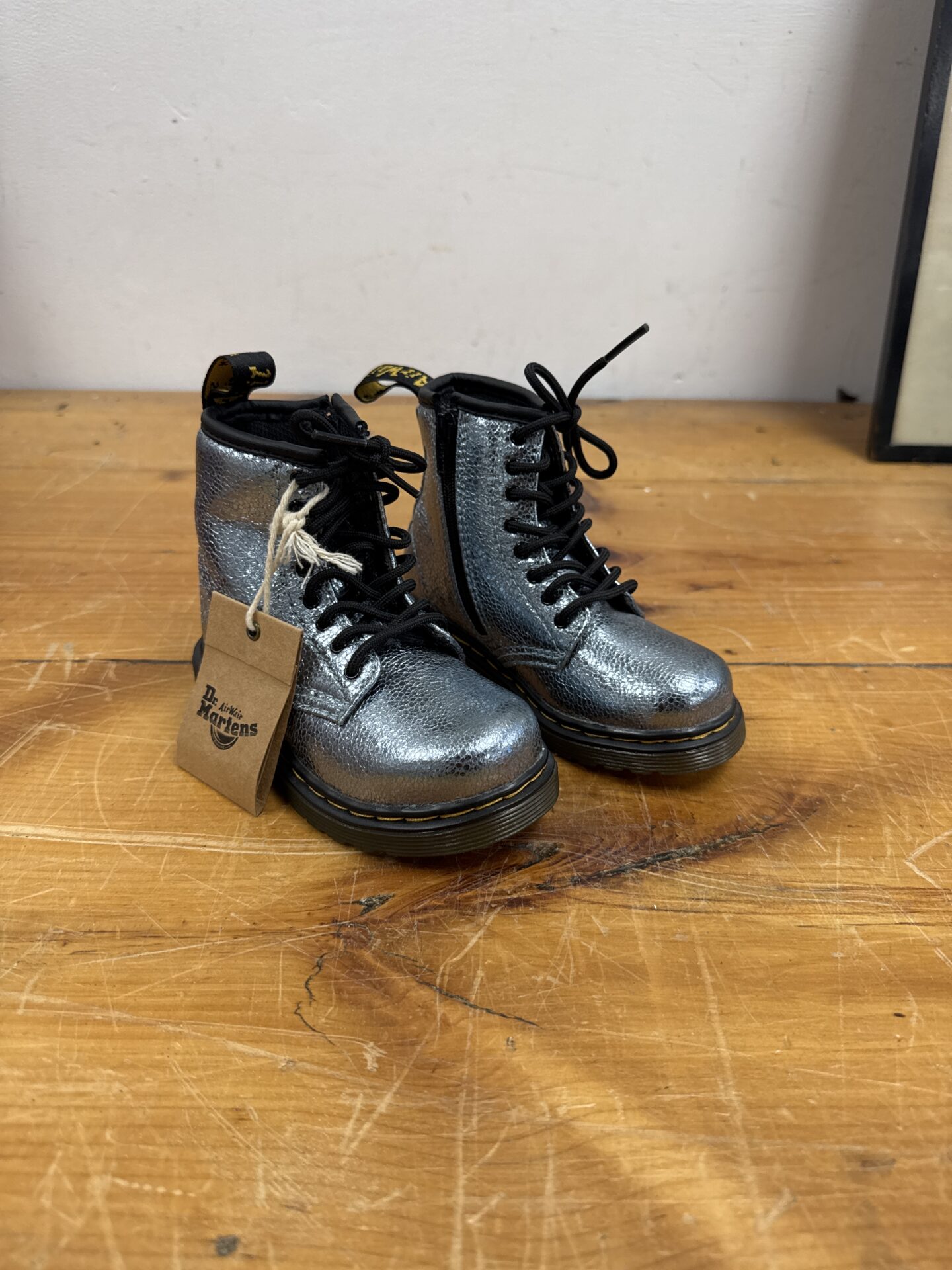 These boots are brand new and unused, still with the original tags attached. They represent a fantastic opportunity to acquire a sought-after brand at a great price. The glitter finish adds a unique touch, making them a desirable addition to any child’s wardrobe or a potential collectible for Dr Martens enthusiasts.