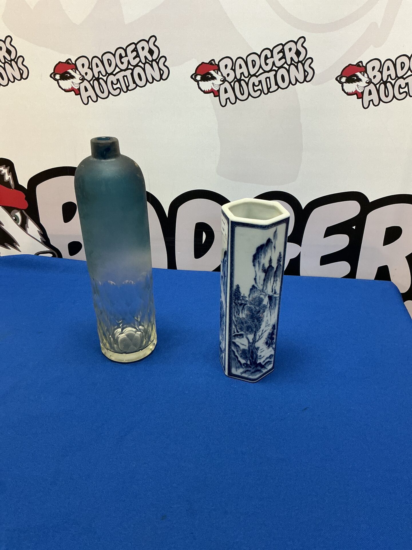 This is a beautifully crafted Chinese blue and white porcelain vase. The vase features intricate detailing and a classic bottle shape, showcasing traditional Chinese artistry. The blue and white colour scheme is timeless and adds an elegant touch to any space.
