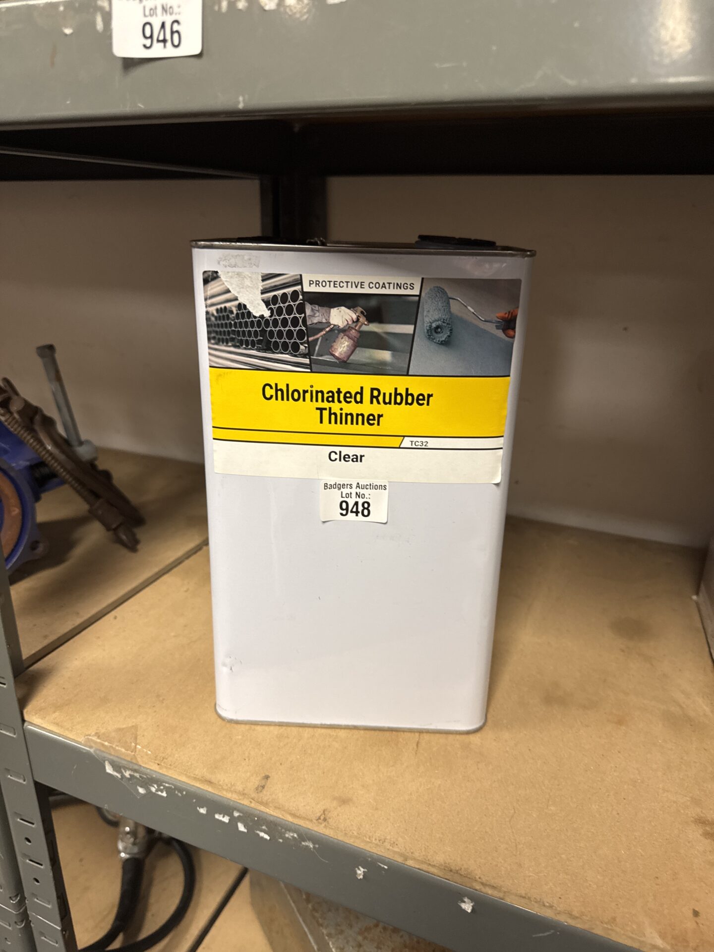 This is a 5-litre tin of chlorinated rubber thinner, a solvent commonly used in industrial applications and for thinning paints. The tin is a standard size for this type of product, designed for easy handling and storage. It’s a versatile solvent suitable for a range of applications where a strong, effective thinner is required.