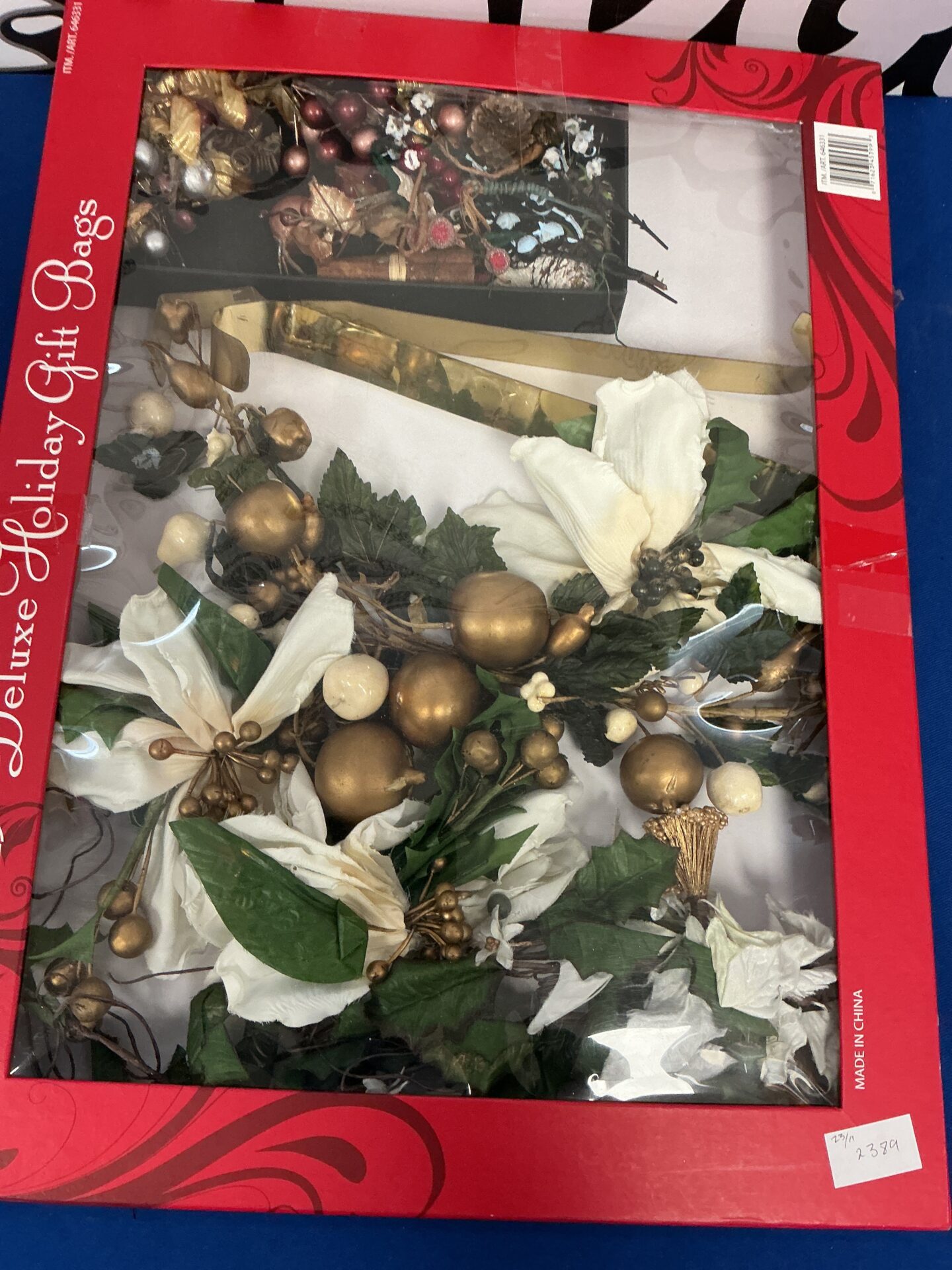 The condition of the decorations appears consistent with age and storage. While the decorations are not new, they present a vintage aesthetic that may appeal to collectors of Christmas memorabilia. The box itself adds to the charm, offering a glimpse into past holiday traditions and potentially increasing its value to a dedicated collector.