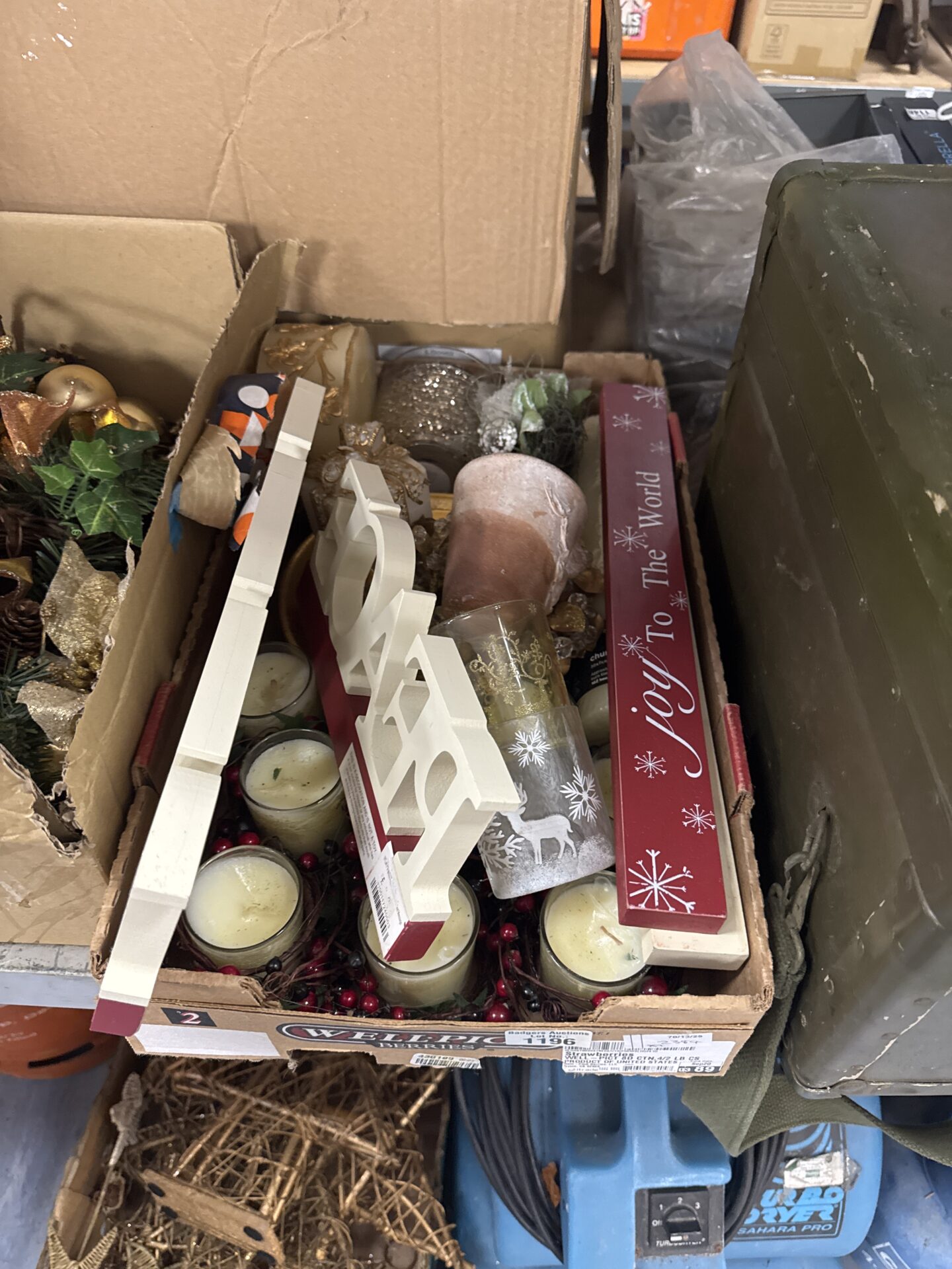 This lot comprises a selection of Christmas decorations, including various ornaments and festive items. The collection appears to feature a mix of styles and materials, offering a diverse range for holiday displays. The lot includes glass ornaments, decorative figures, and other seasonal embellishments, intended to add a festive touch to any home.