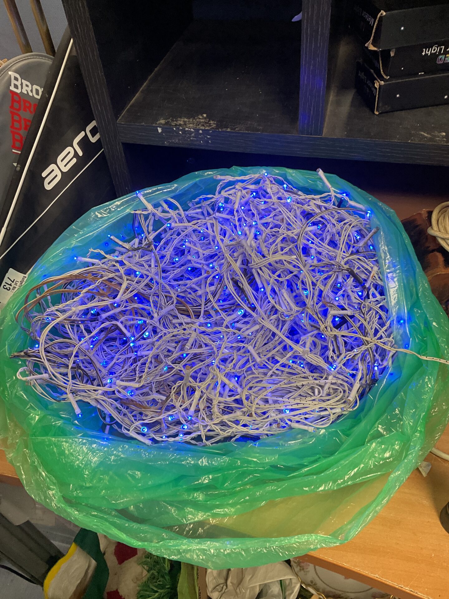 This set of lights is presented as-found, with no assessment of functionality. The lights may appeal to collectors of vintage or festive decorations, or those seeking components for repair or repurposing. The length and colour combination make it suitable for large-scale displays or unique installations.