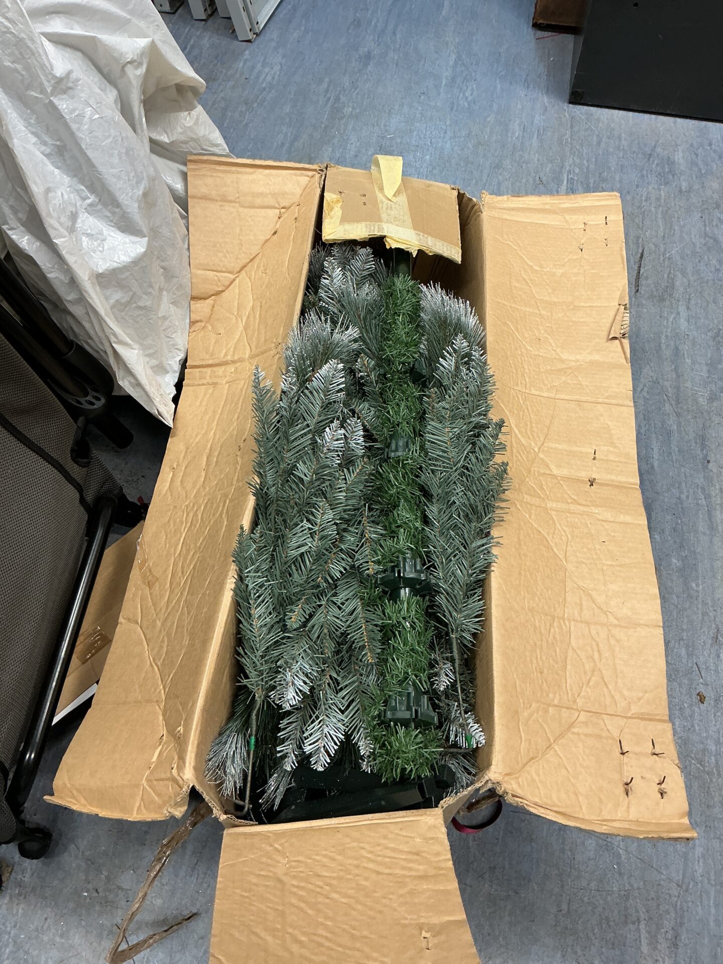 This is a spruce effect Christmas tree, measuring approximately 5 feet in height. It is designed to mimic the appearance of a real spruce tree, offering a festive touch to holiday decorations. The tree is an artificial construction, intended for repeated use during the Christmas season.