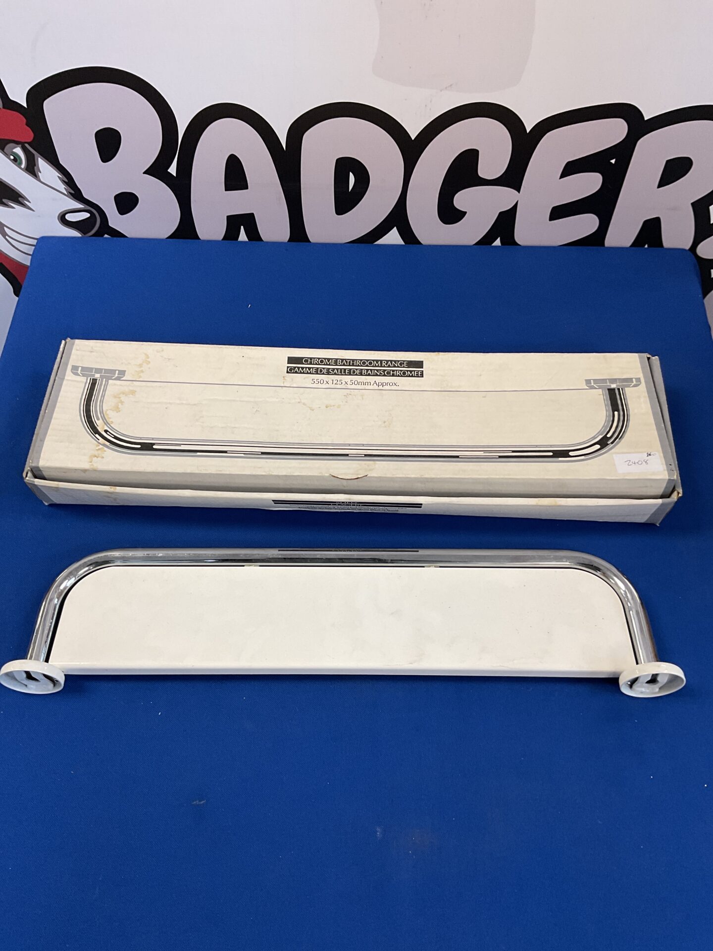 This is a brand new chrome and white bathroom shelf, measuring 550x50mm. It’s designed to provide stylish and practical storage in any bathroom setting. The combination of chrome and white offers a modern aesthetic that complements a variety of bathroom décor styles.