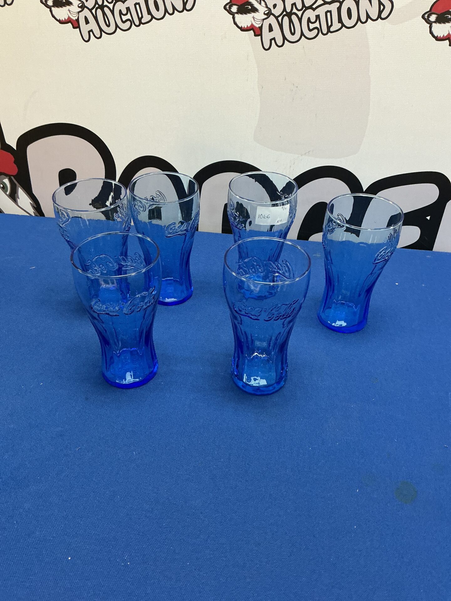 This lot comprises six vintage Coca Cola glasses. These glasses feature a classic design, likely produced for promotional purposes, and showcase the iconic Coca Cola branding. The glasses are constructed from glass and exhibit a vibrant colour, adding to their visual appeal and collectible value.