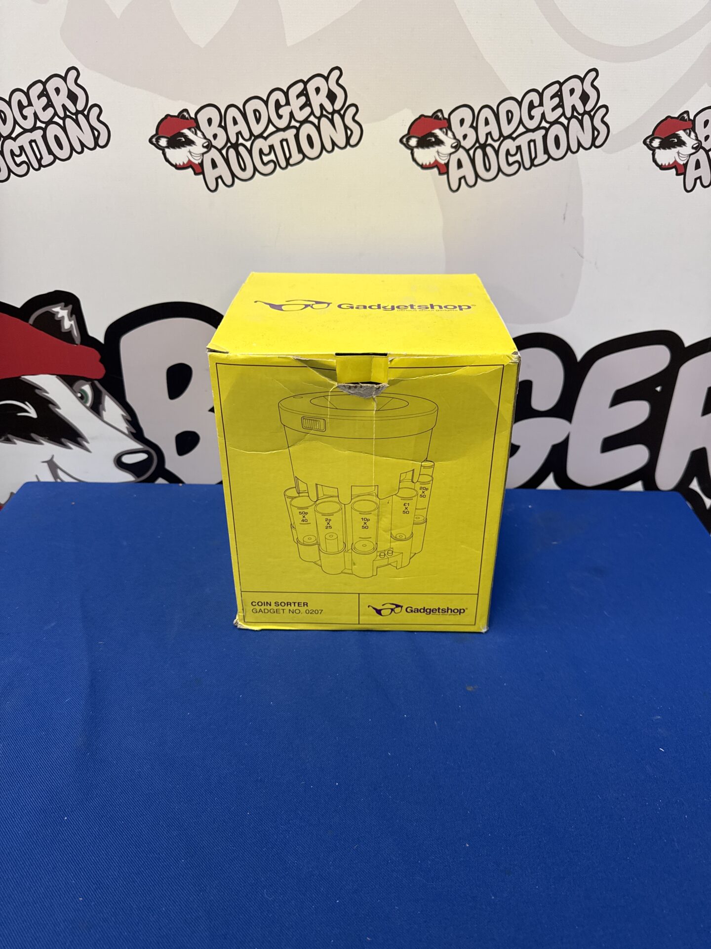 This is a Gadgetshop coin sorter, designed to efficiently organise and count loose change. It features multiple slots for different denominations, allowing for quick separation and storage of coins. This handy device is ideal for both personal use and small businesses, simplifying cash handling and saving time.