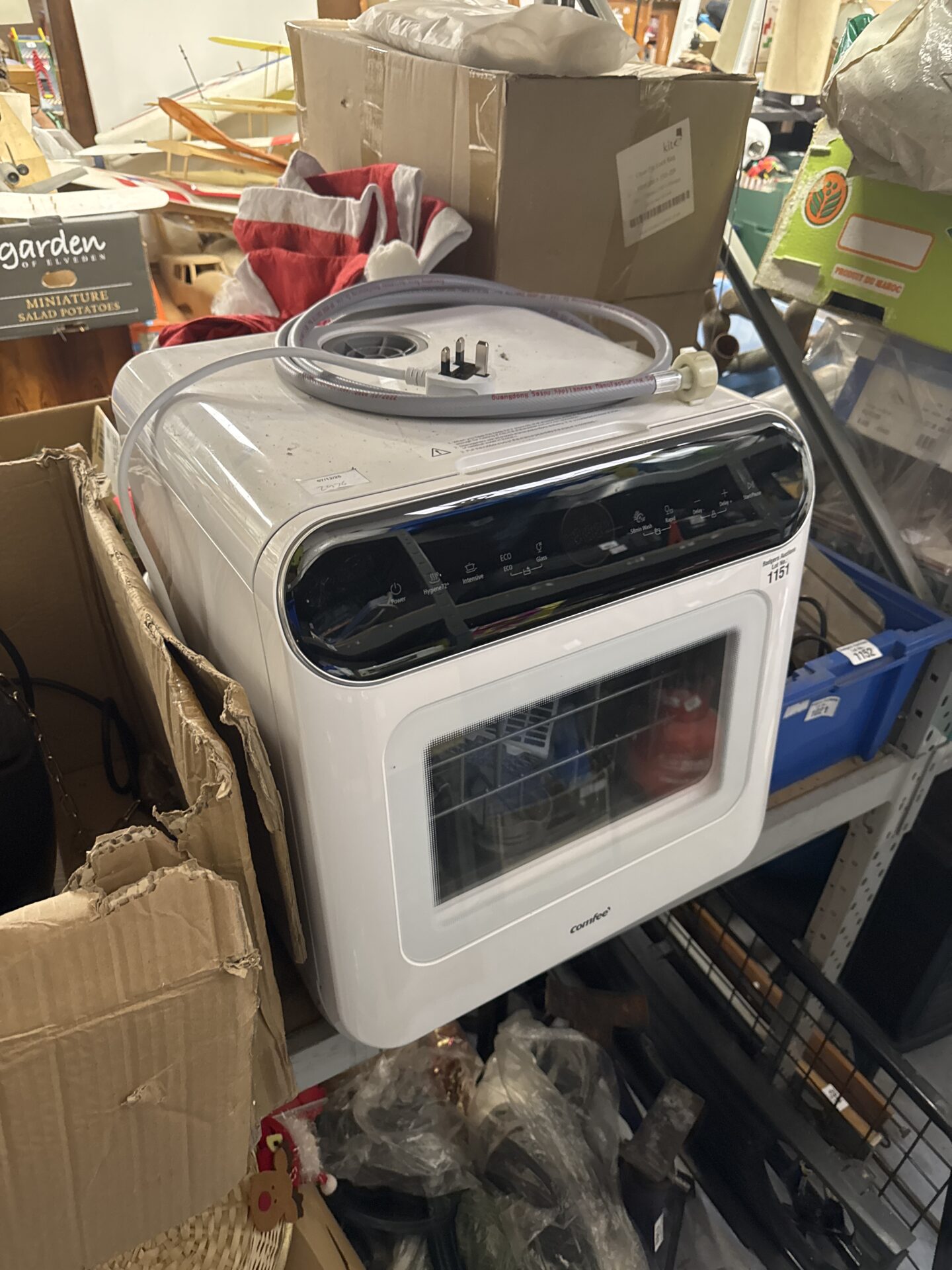 This Comfee dishwasher is presented for auction in used condition. Please examine the images carefully to assess its cosmetic condition and to understand what is included. It may be of interest to those seeking a budget-friendly dishwasher or a project for someone with appliance repair skills.