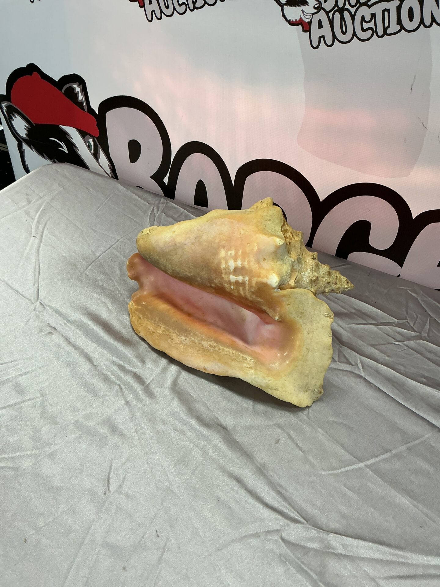 This conch shell is in good condition, showing natural wear and minor imperfections consistent with its origin. It is a genuine, naturally sourced shell, not a reproduction, making it a desirable piece for collectors of marine specimens or those seeking authentic coastal decor. Its impressive size and beautiful colour will add a touch of the ocean to any home or collection.