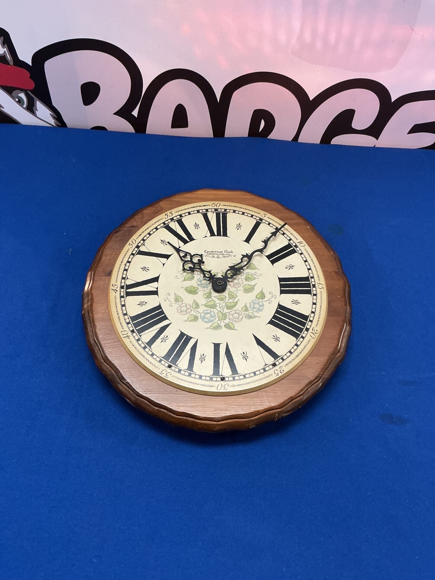 This is a Connecticut Quartz wall clock, featuring a classic mid-century modern design. The clock face is notable for its minimalist aesthetic, with bold numerals and hands against a neutral background. This style was popular in the 1960s and 1970s, reflecting the atomic age and a desire for clean, functional design in the home.