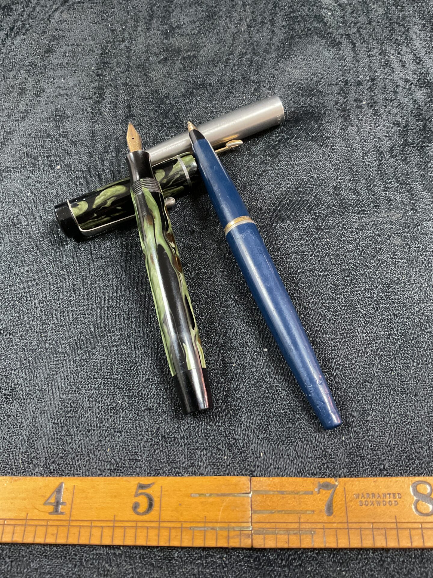 Both pens are presented as viewed in the images, and their functionality is not assessed. The Conway Stewart shows signs of wear consistent with age, and the Parker pen displays some surface scratches. These pens would appeal to collectors of vintage writing instruments, or those seeking to restore classic pens.