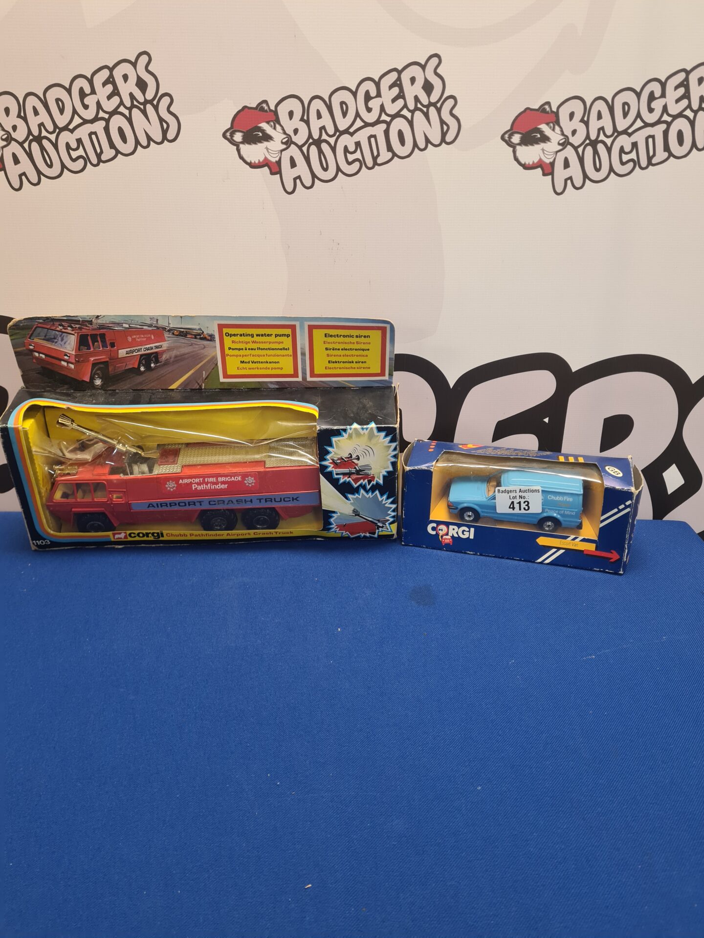 This is a classic Corgi diecast model of an Airport Fire Brigade Pathfinder. This detailed model faithfully replicates the iconic fire tender, featuring realistic detailing and a vibrant red finish. A highly sought-after piece for collectors of vintage diecast vehicles and Corgi toys, this model captures the spirit of aviation emergency services.