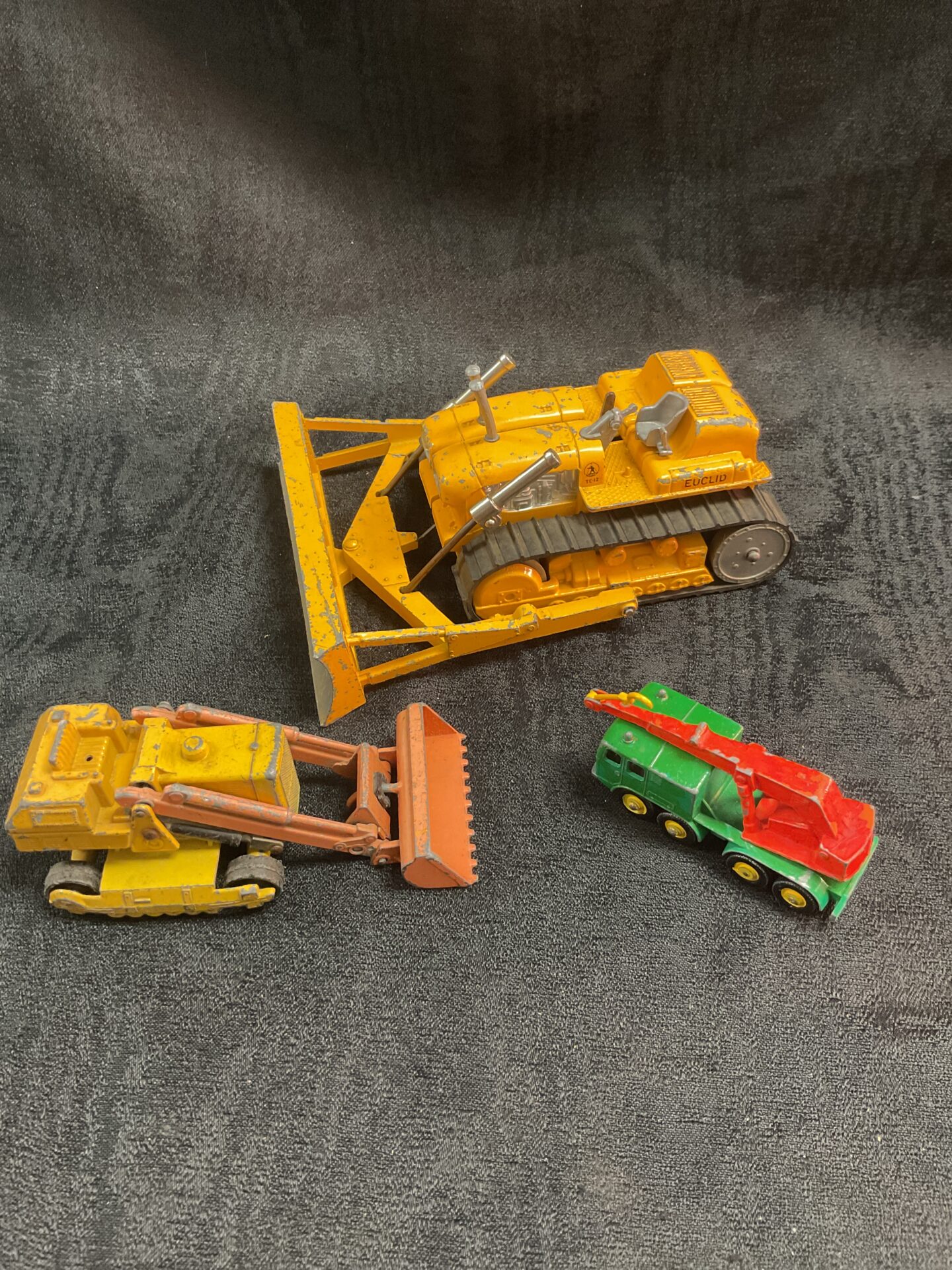 816 Corgi Major Toys Euclid Dc12 Bulldozer And Two Matchbox Digger And Crane