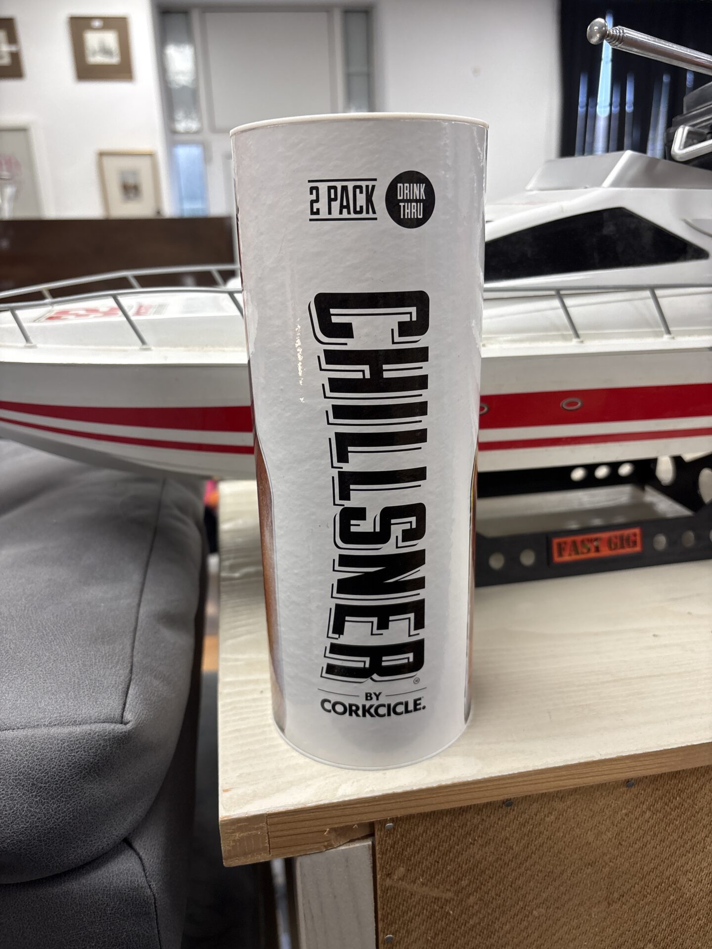 This Corkcicle Chillsner 2 pack appears to be in used condition, with signs of wear consistent with previous use. While not assessed for completeness, this set presents an opportunity for collectors of beverage accessories or those seeking functional drinkware. The stainless steel construction and recognizable Corkcicle branding add to its appeal, making it a potentially desirable addition to a collection or a practical item for everyday use.