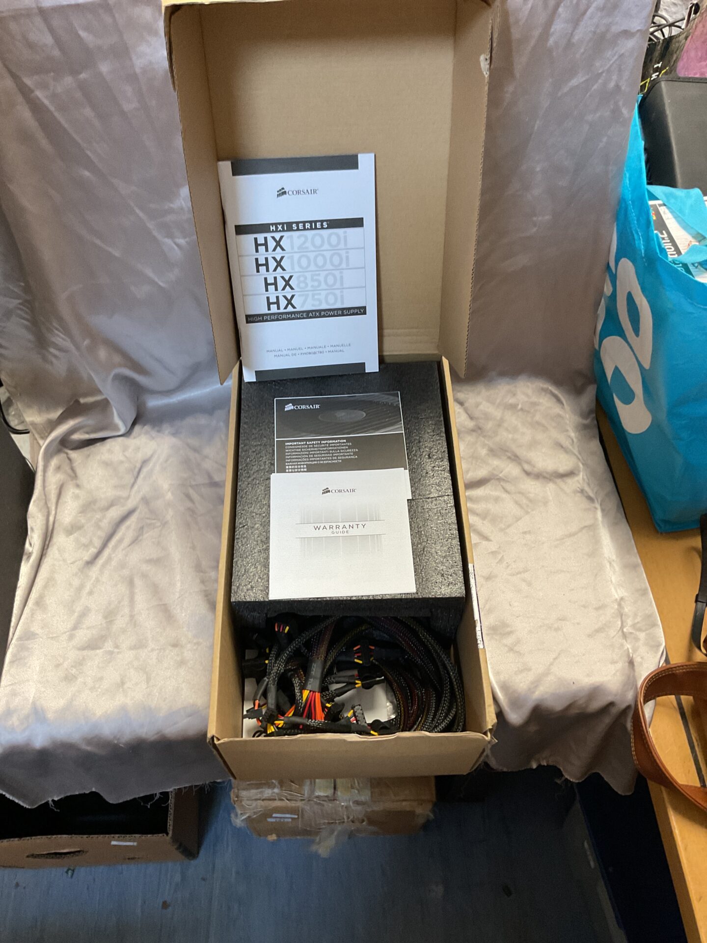 This is a Corsair HX850 high-performance ATX power supply unit. It is designed to provide reliable power for desktop computers, featuring a modular design for cable management and efficient cooling. The unit is part of the HX series, known for its quality components and stable output.