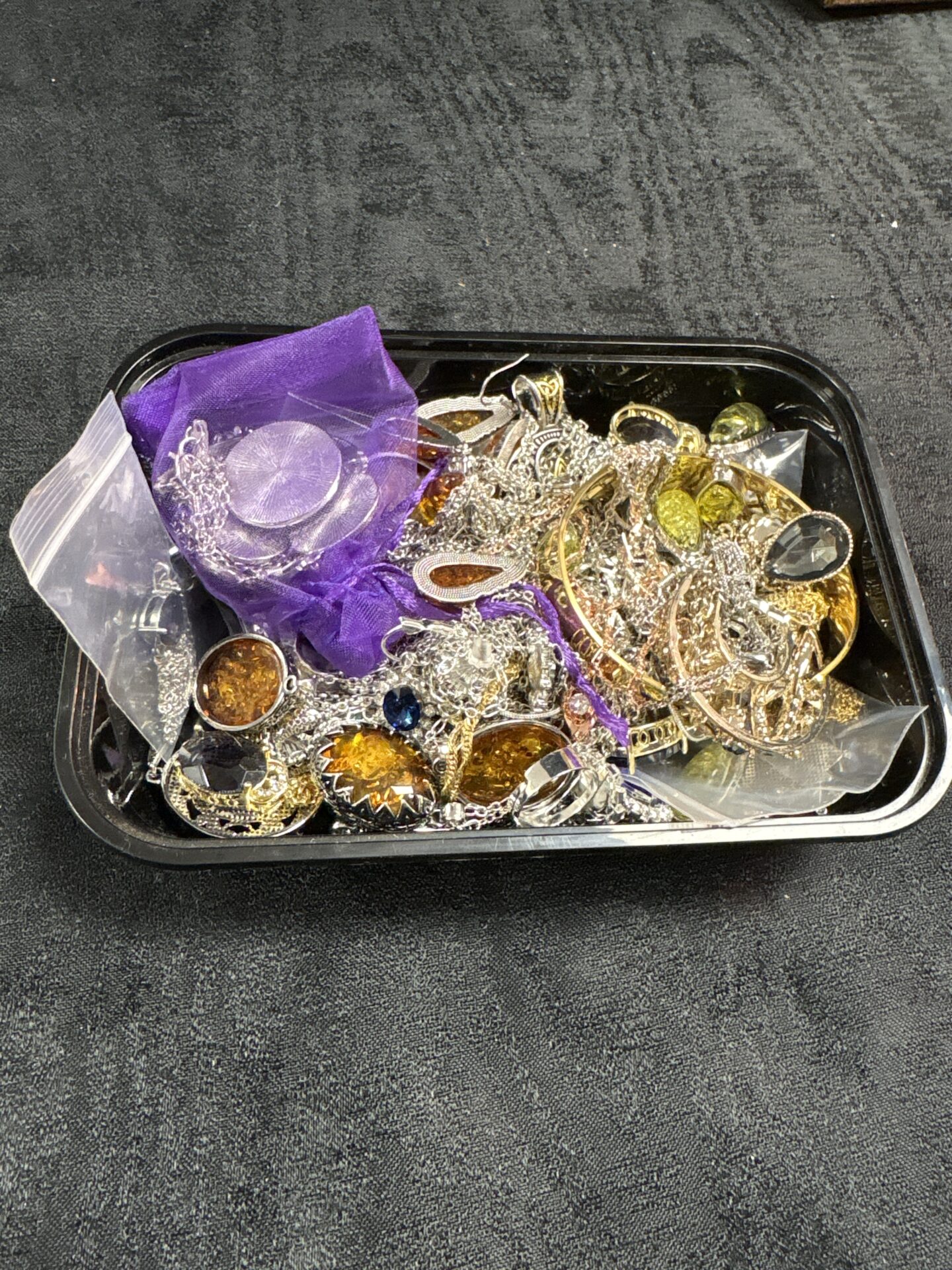 The jewellery presents as a mixed lot with varying degrees of wear, consistent with vintage or pre-owned items. While a detailed assessment of each piece is not possible, the lot offers potential for restoration, repurposing, or simply adding to a collection of costume jewellery. This lot may appeal to collectors, designers, or individuals seeking unique fashion accessories.