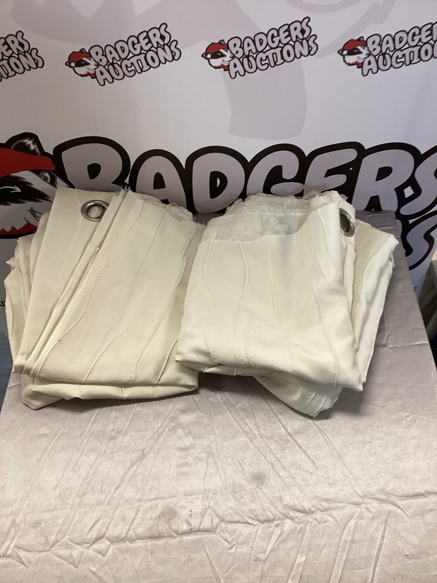 This listing features a pair of cream-coloured curtains. The curtains appear to be made from a lightweight fabric, suitable for allowing light to filter through while providing some privacy. Their neutral colour would likely complement a variety of interior design styles.