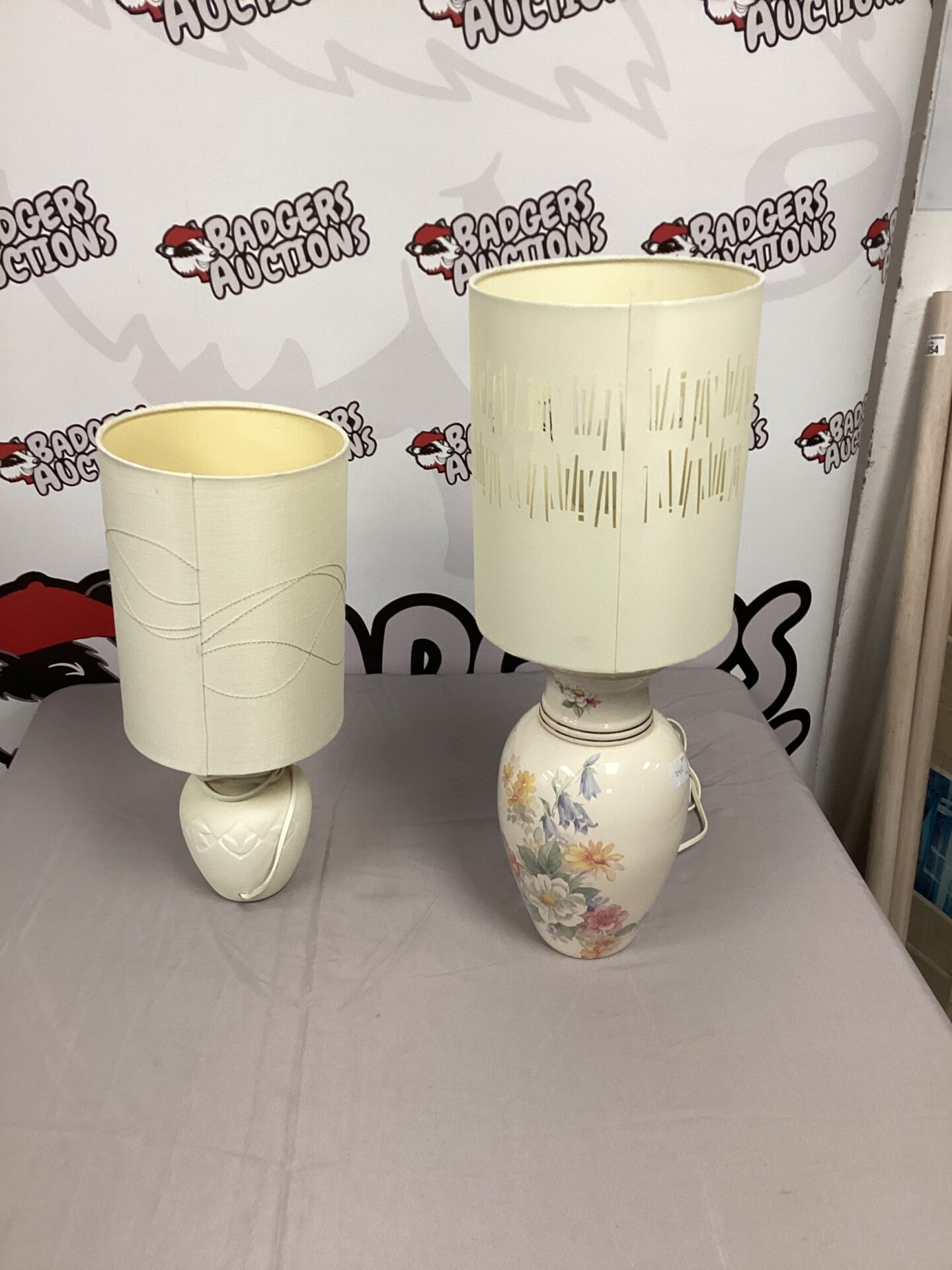 646 Two Cream Coloured Table Lamps Inc Floral Patterned Lamp