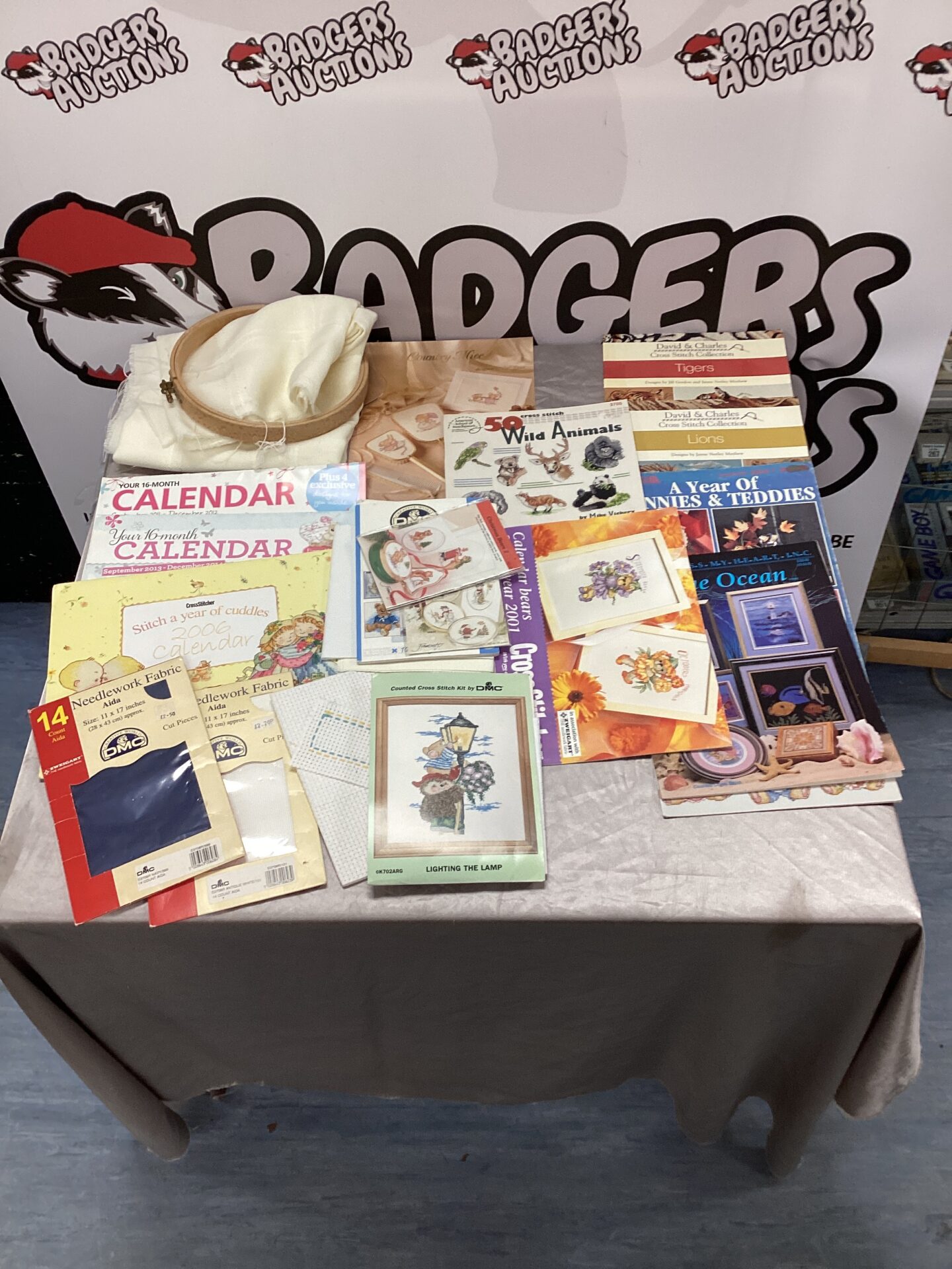 529 Bag Of Cross Stich Sewing Magazines & Fabric