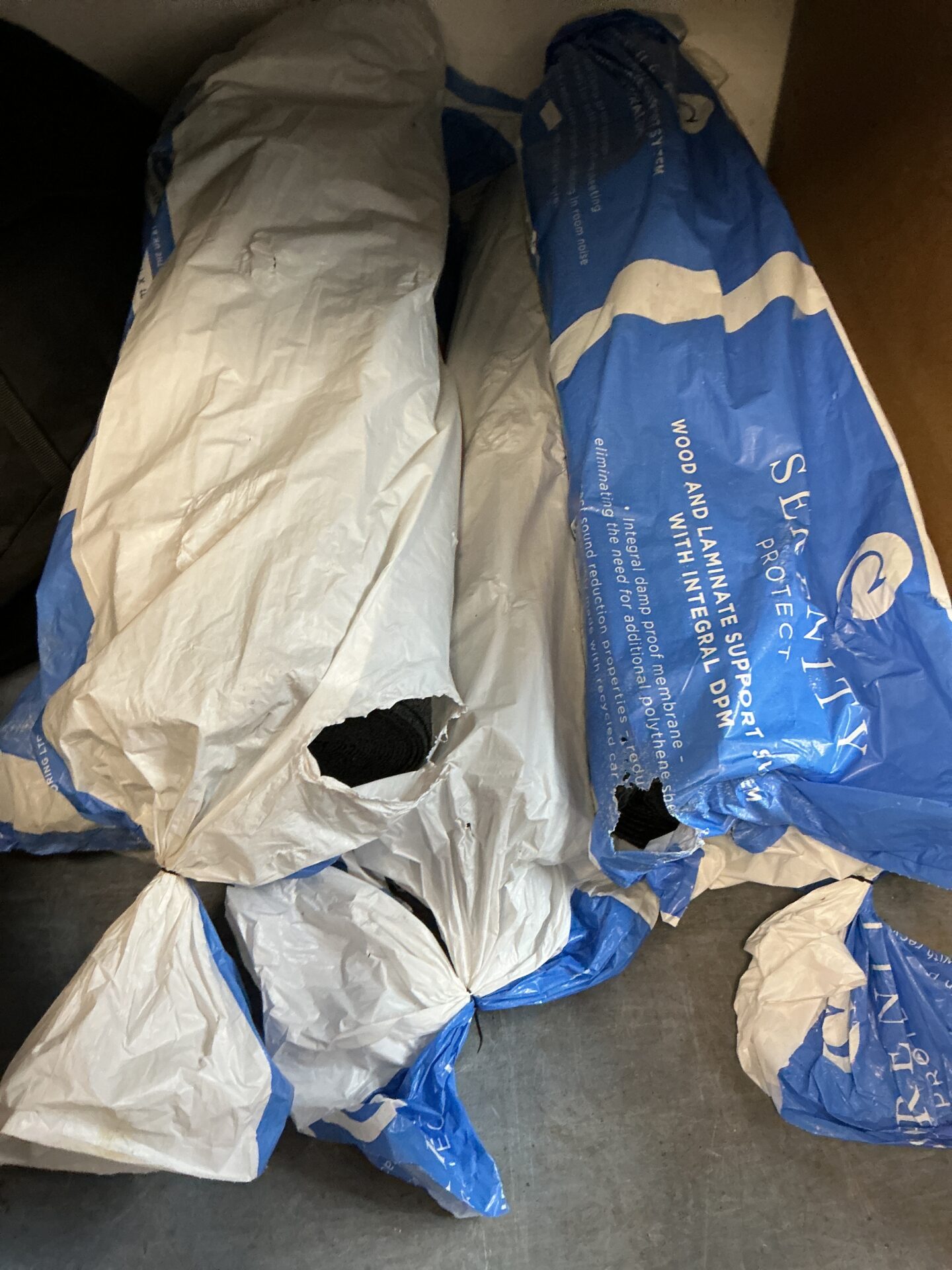 These are five rolls of damp proof membrane, designed to create a barrier against moisture in construction projects. The membrane appears to be a polythene-based material, commonly used in foundations, floors, and walls to prevent dampness and protect structures from water damage. The rolls are intended for use as part of a comprehensive damp-proofing system, ensuring a dry and stable environment within buildings.