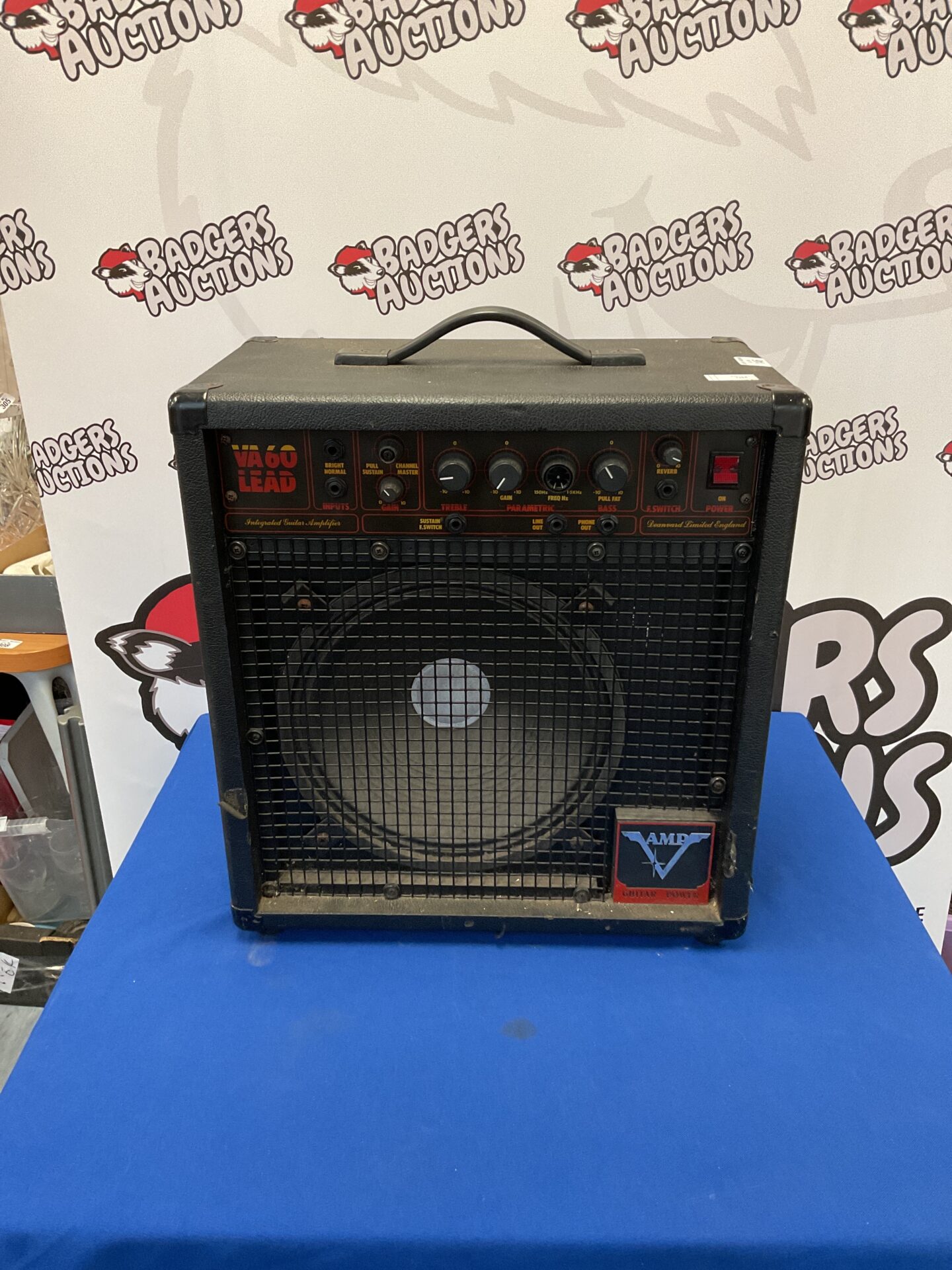 This is a Deanvard VA60 Lead integrated guitar amplifier. It features a classic design, likely from the mid-to-late 20th century, and is intended for use with electric guitars. The amplifier’s controls allow for adjustment of volume, tone, and potentially other effects, offering a range of sonic possibilities for guitarists.
