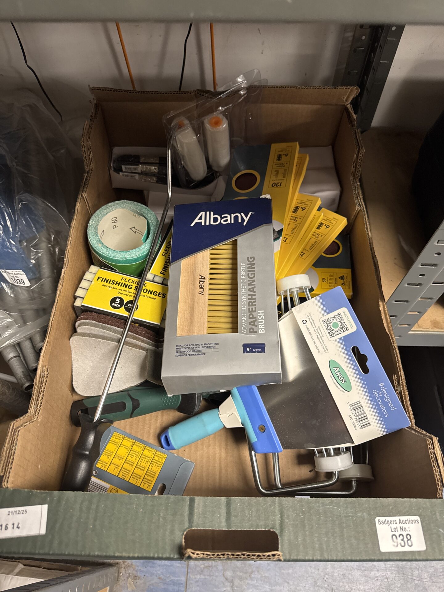This lot comprises a collection of new decorating supplies, including Albany branded items. The collection appears to contain various tools and materials for painting and decorating projects, suitable for both amateur and professional use. The lot includes items such as paint brushes, filling knives, and potentially other associated tools for preparing surfaces and applying finishes.