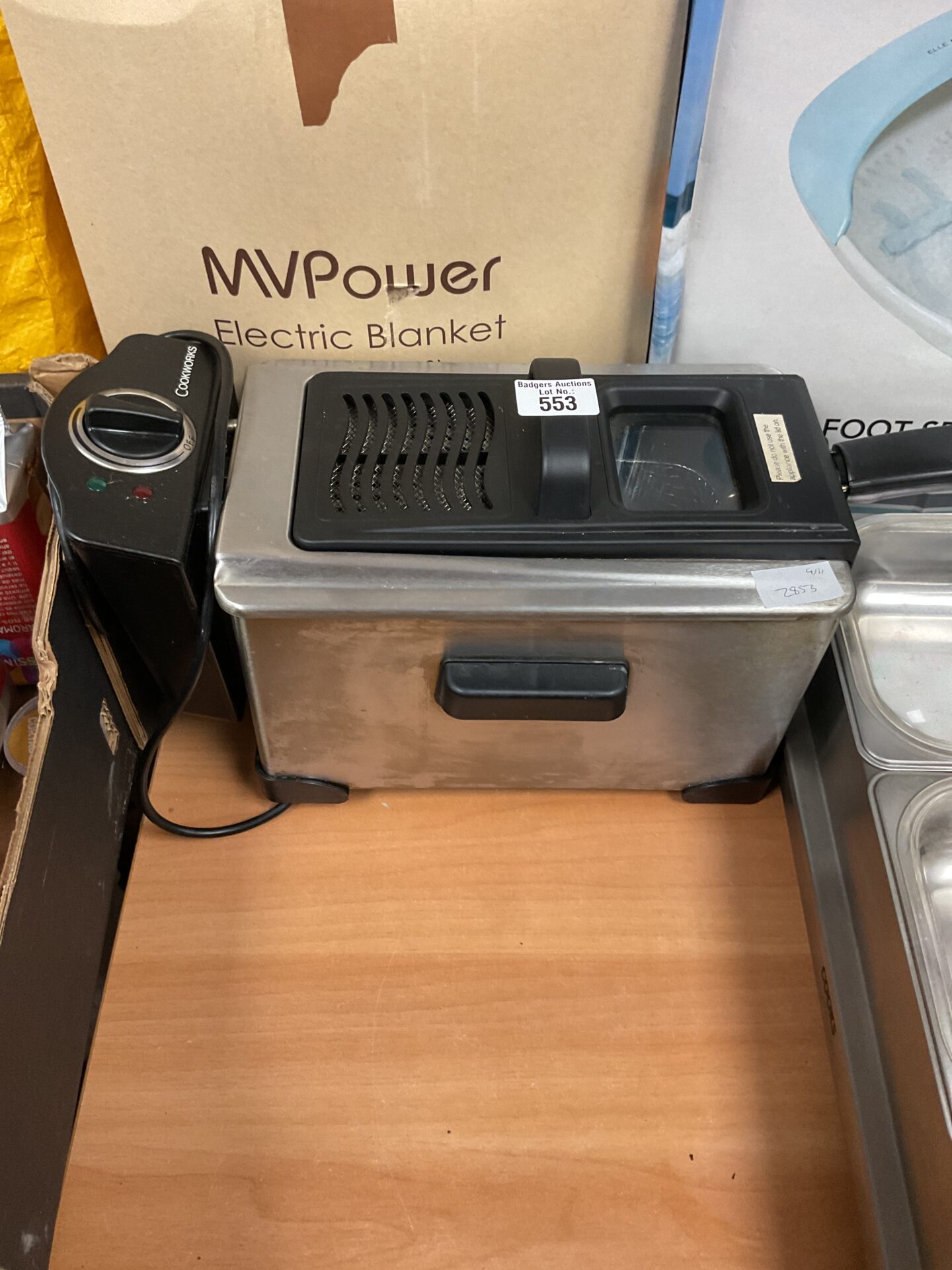 This is a Cookworks deep fat fryer, designed for home cooking. It features a stainless steel finish and a removable frying basket for easy use and cleaning. The fryer is intended to provide a convenient way to prepare fried foods at home, offering a practical solution for cooking enthusiasts.