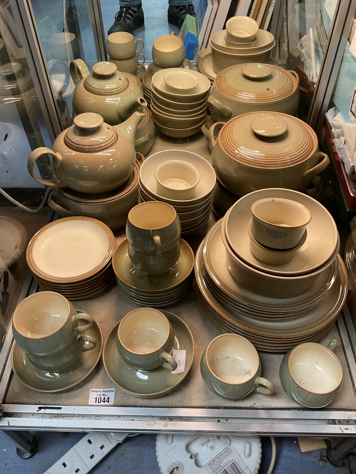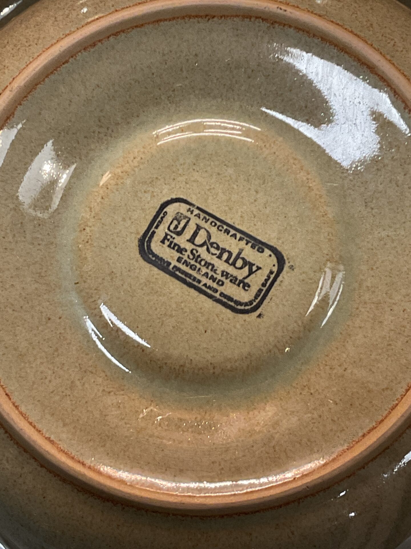 This dinner service presents as a well-used collection, with variations in glaze and potential for minor wear consistent with age and use. The pieces exhibit the character expected of vintage stoneware, and while not pristine, they retain their structural integrity and aesthetic charm. Collectors appreciate Denby stoneware for its durability, timeless design, and collectibility, making this set an attractive option for both everyday use and display.