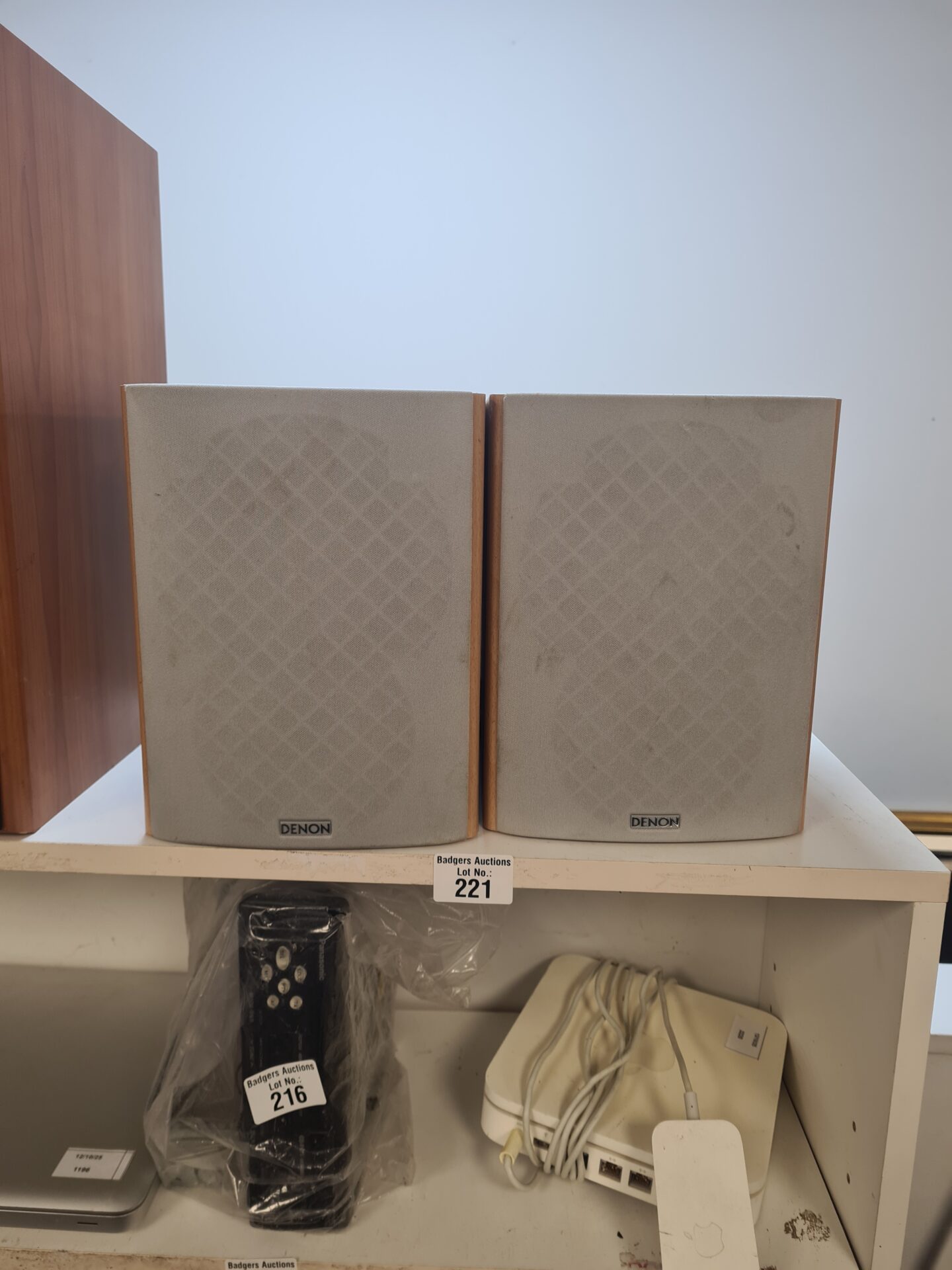 These are a pair of vintage Denon SCM51 bookshelf speakers. These speakers are known for their clear and balanced sound, making them a popular choice for audiophiles and music lovers. The SCM51 model offers a classic design that will complement any home audio setup.