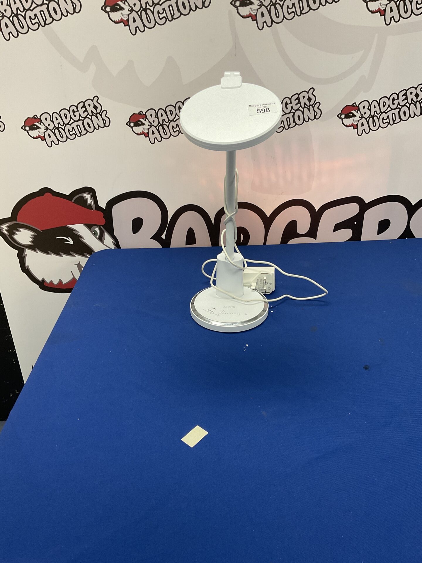 The lamp is presented in as-found condition, with signs consistent with use and age. Collectors and buyers may be interested in this lamp for its functional design and potential as a vintage or retro addition to a home or office. Please examine the provided images carefully to assess its condition before purchase.
