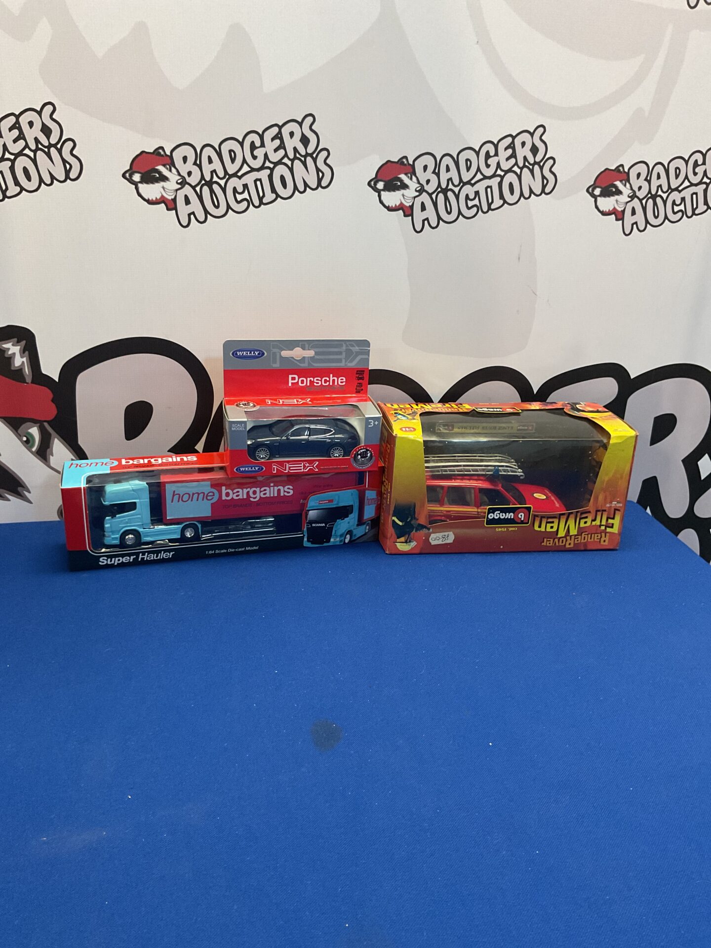 This lot comprises three boxed diecast model cars from Welly and Burago. These miniature vehicles are highly detailed and represent popular car models, perfect for collectors or enthusiasts. The collection offers a variety of styles and finishes, adding to its appeal.
